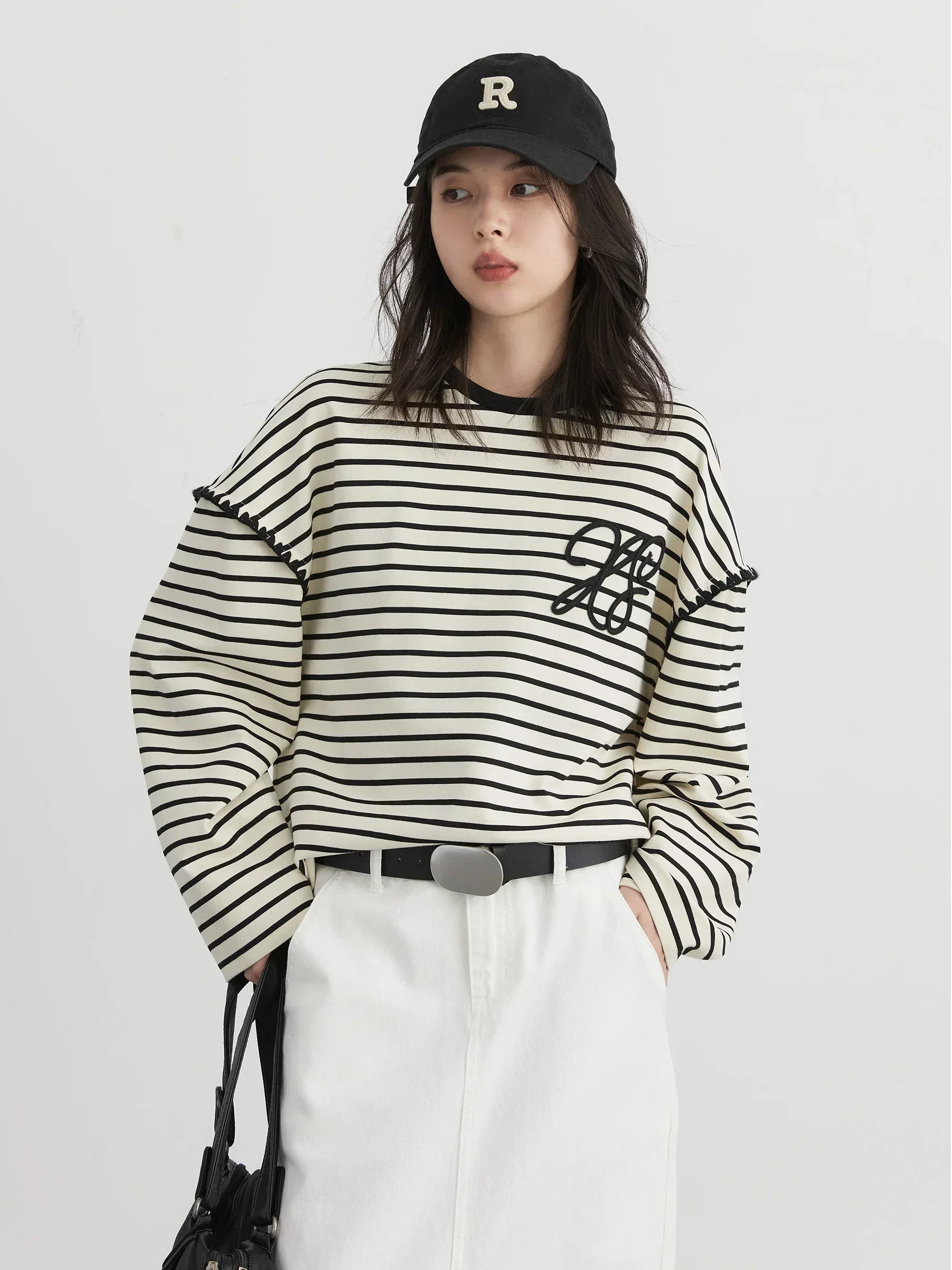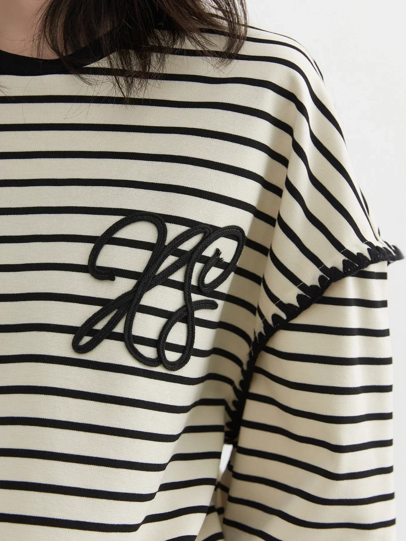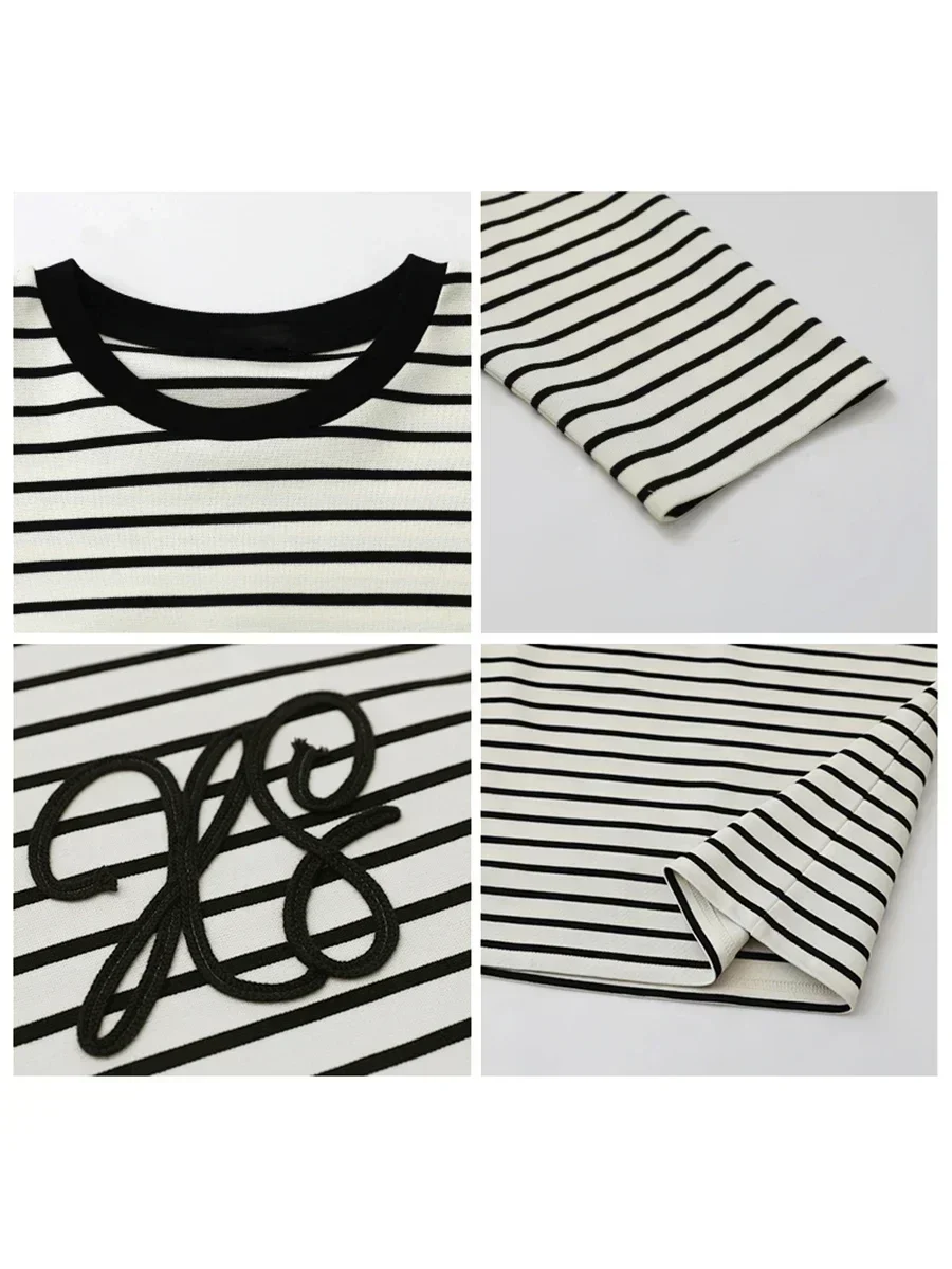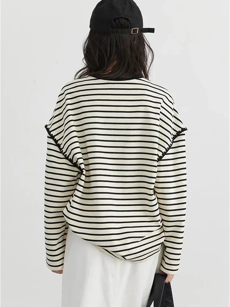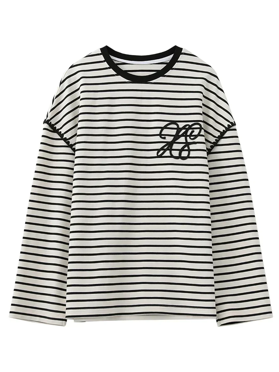 Camisetas CHIC VEN para mujer, camisetas holgadas de manga larga con rayas contrastantes y cuello redondo, Top informal bordado para mujer, primavera y otoño 2024