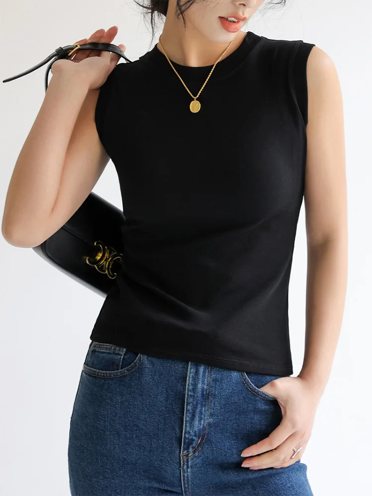Camisola chaleco para mujer cuello redondo colorido básico sin mangas camiseta tops camisetas con cobertura para escote lateral