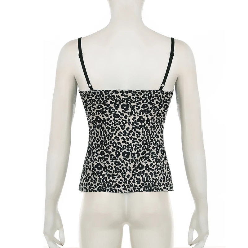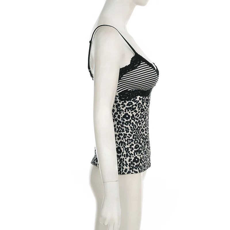 SUCHCUTE camisola Sexy ajustada con estampado de leopardo Y2K Vintage 2000s encaje Patchwork cuello pico Spaghetti Strap camiseta sin mangas mujer chaleco de verano nuevo