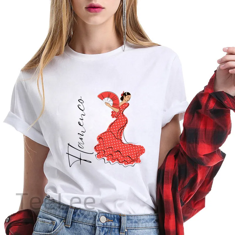 Tendencias de camisetas de flamenco para ropa de mujer, gráficos impresos de verano de manga corta, damas de viaje, camiseta superior Y2k, camiseta