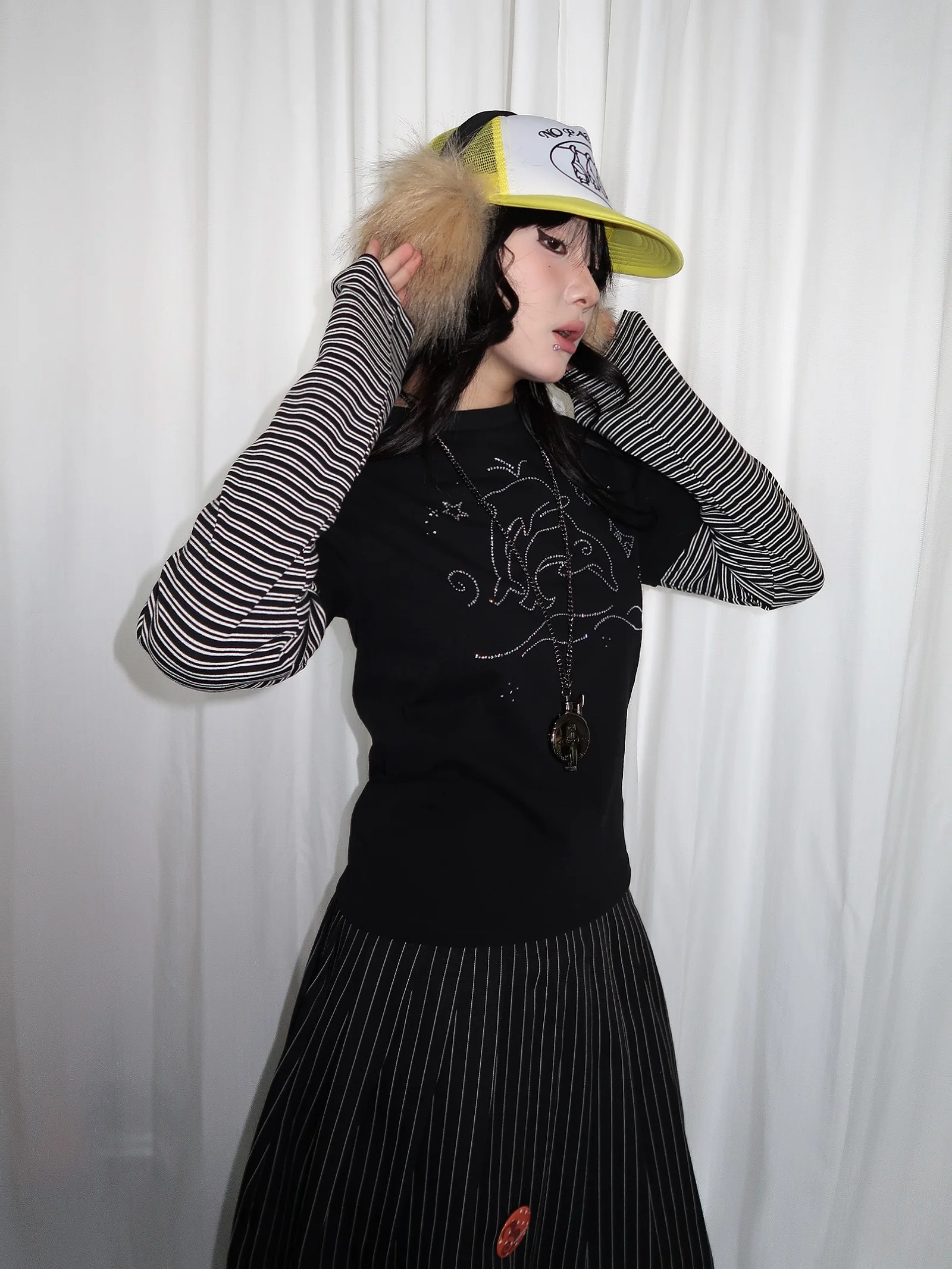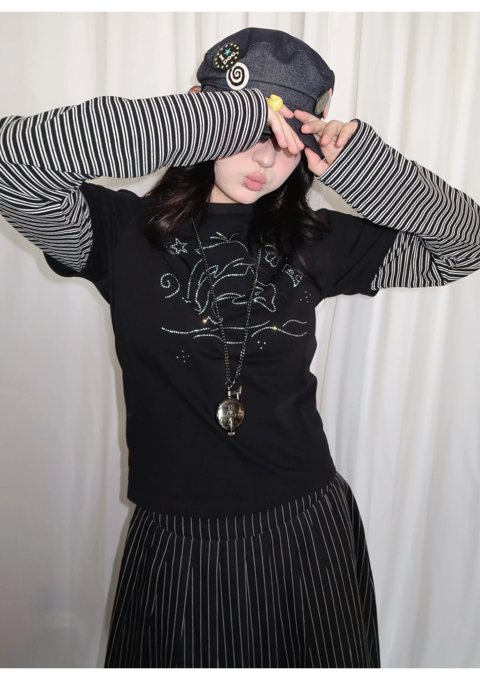 Tonngirl Y2k-Camiseta Vintage de manga larga para mujer, Tops Grunge japoneses de retales de los años 2000, ropa de calle, Tops gráficos con estampado Retro americano