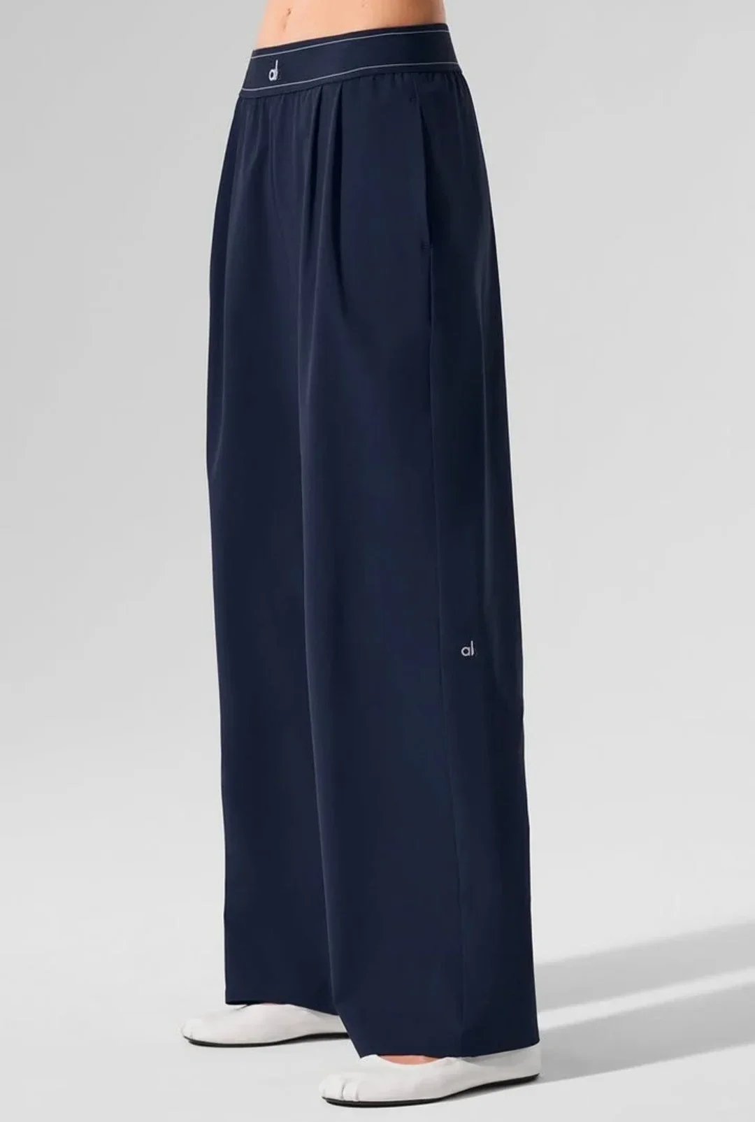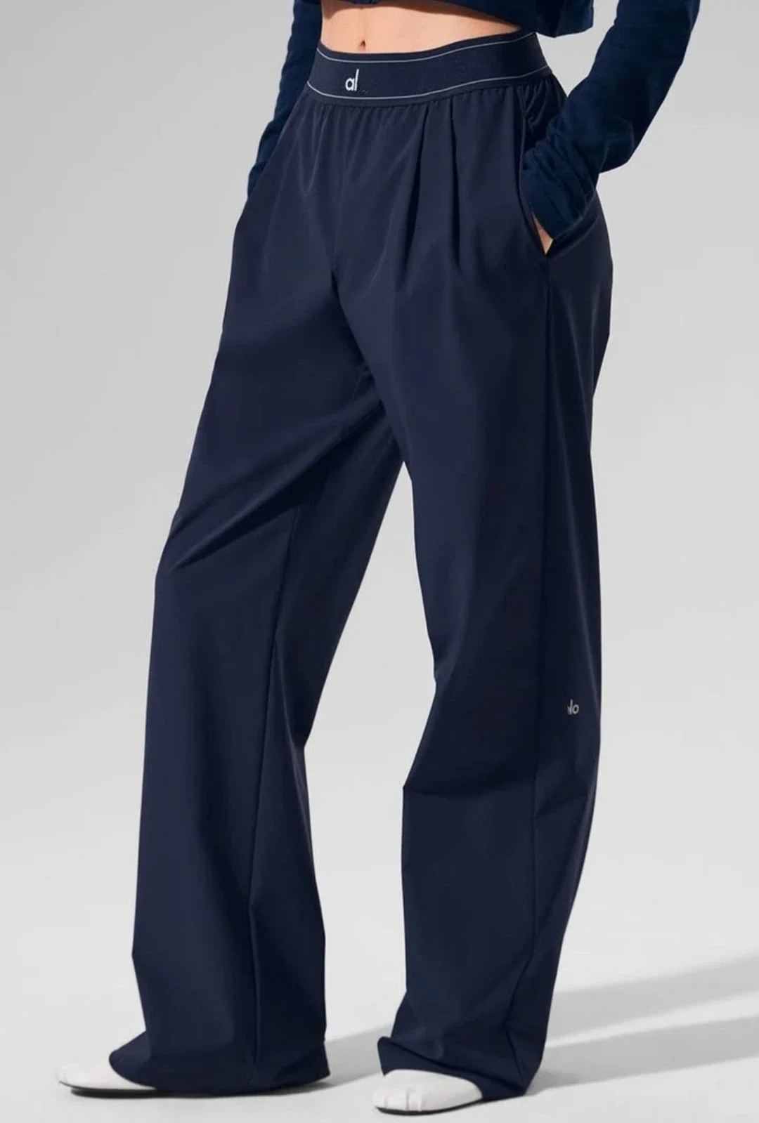 Pantalones anchos deportivos de yoga para mujer, finos, casuales, holgados, azul marino, tipo jogger, con cintura elástica, lisos, para fitness