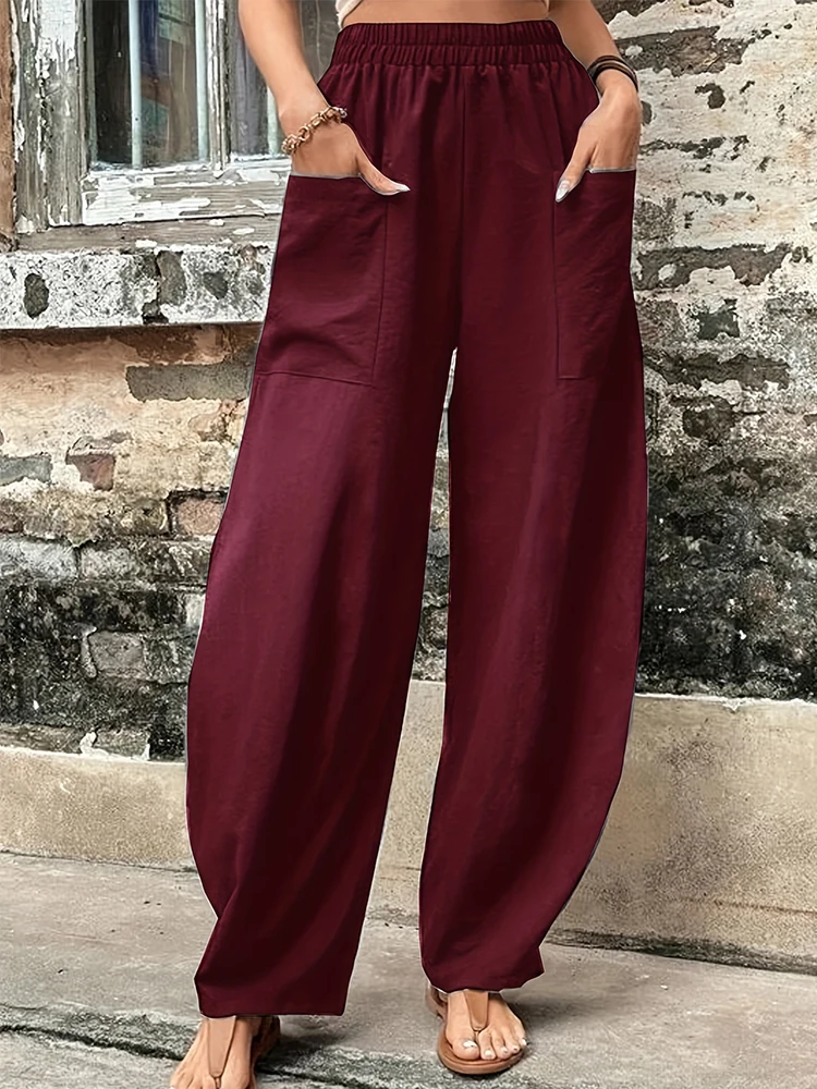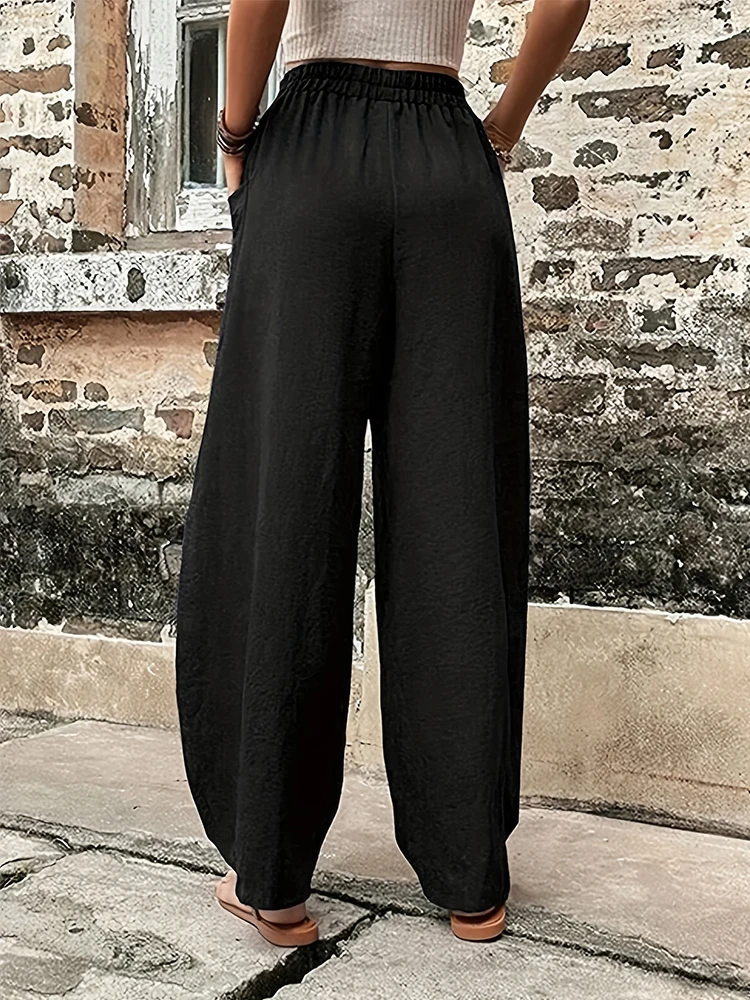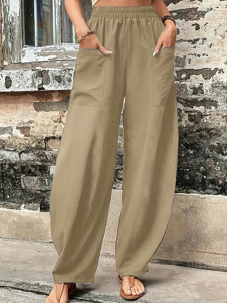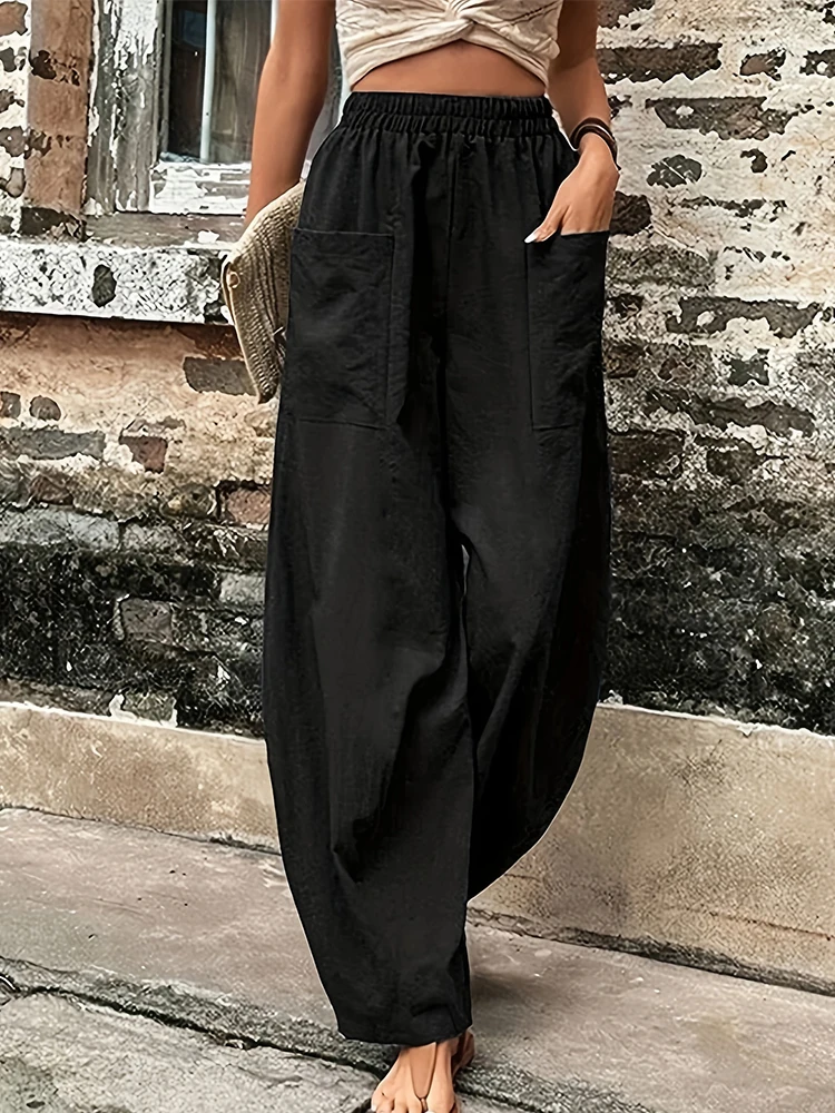 Pantalones Harem de Algodón y Lino para Mujer Talla Grande, Pantalones Casuales Holgados Retro, Cintura Elástica, Pantalones de Trabajo de Pierna Ancha