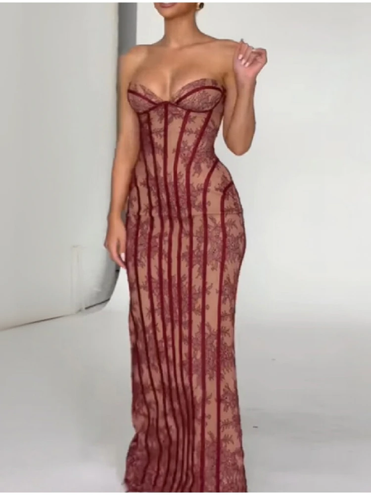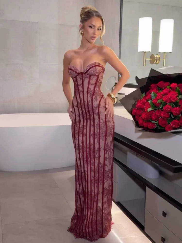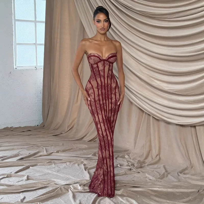 Vestido Elegante sin Tirantes, Estilo Retro con Corsé de Encaje, Vestidos Sensuales para Mujer, Atuendos Femeninos Modernos y Románticos para Fiestas