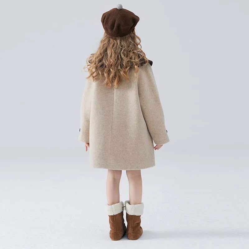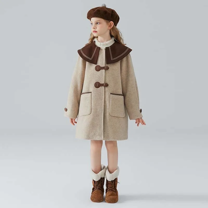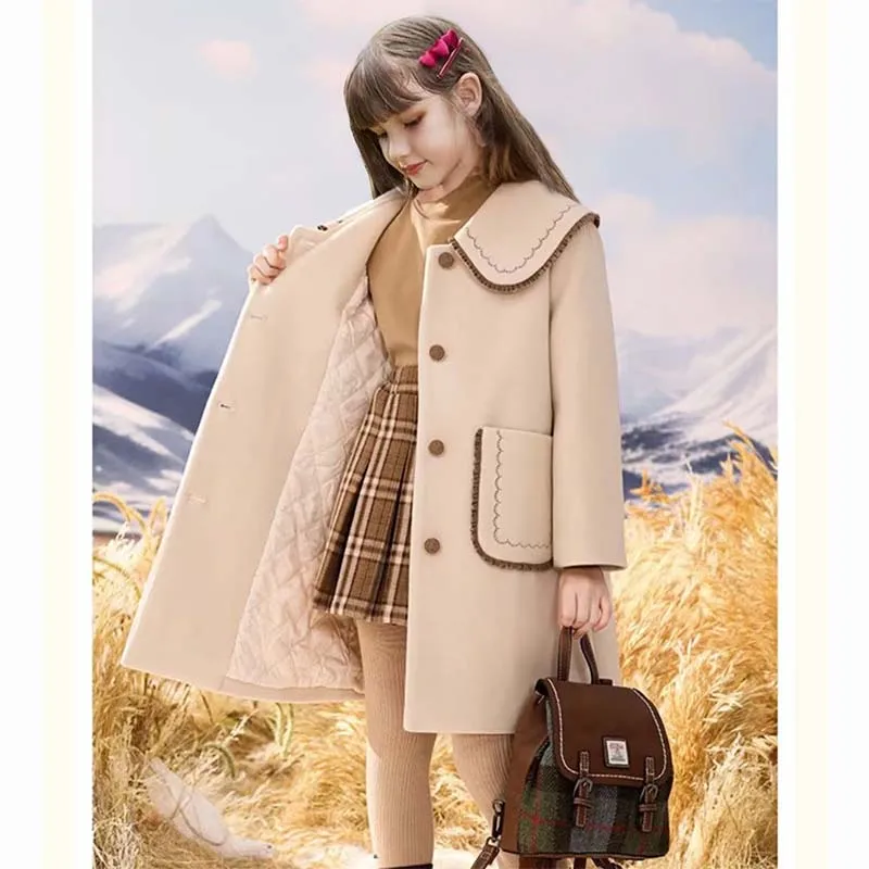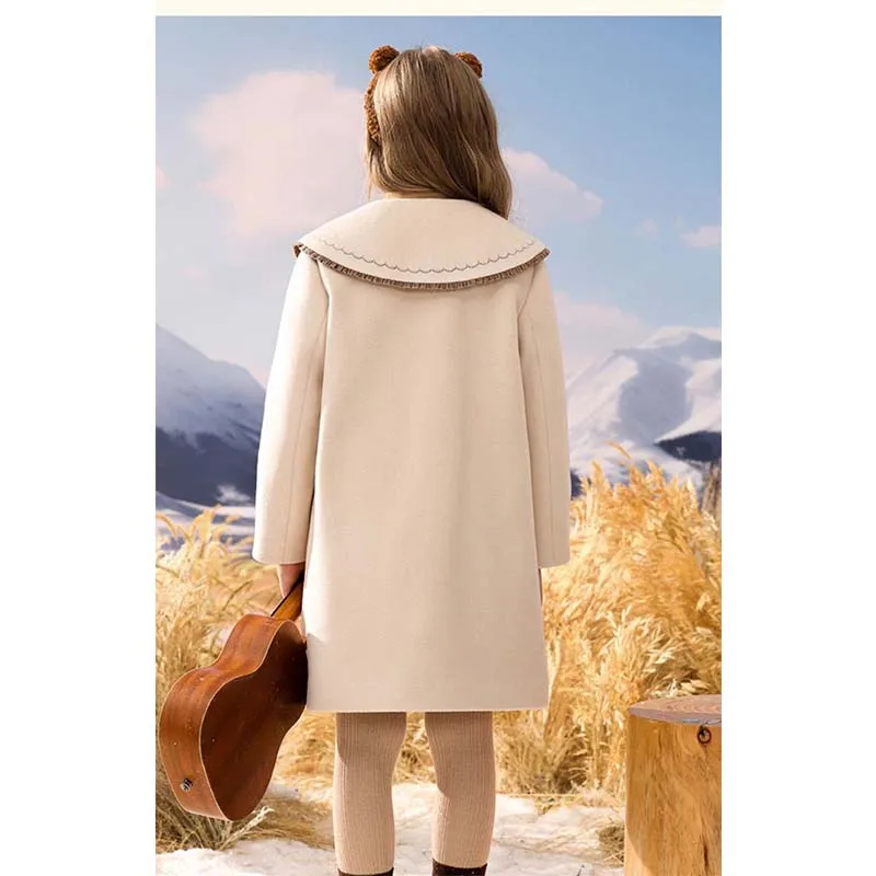 Chaqueta larga de lana gruesa para niña, abrigo coreano de 3 a 14 años, prendas de vestir exteriores completas, moda para niño, primavera y otoño, 2023