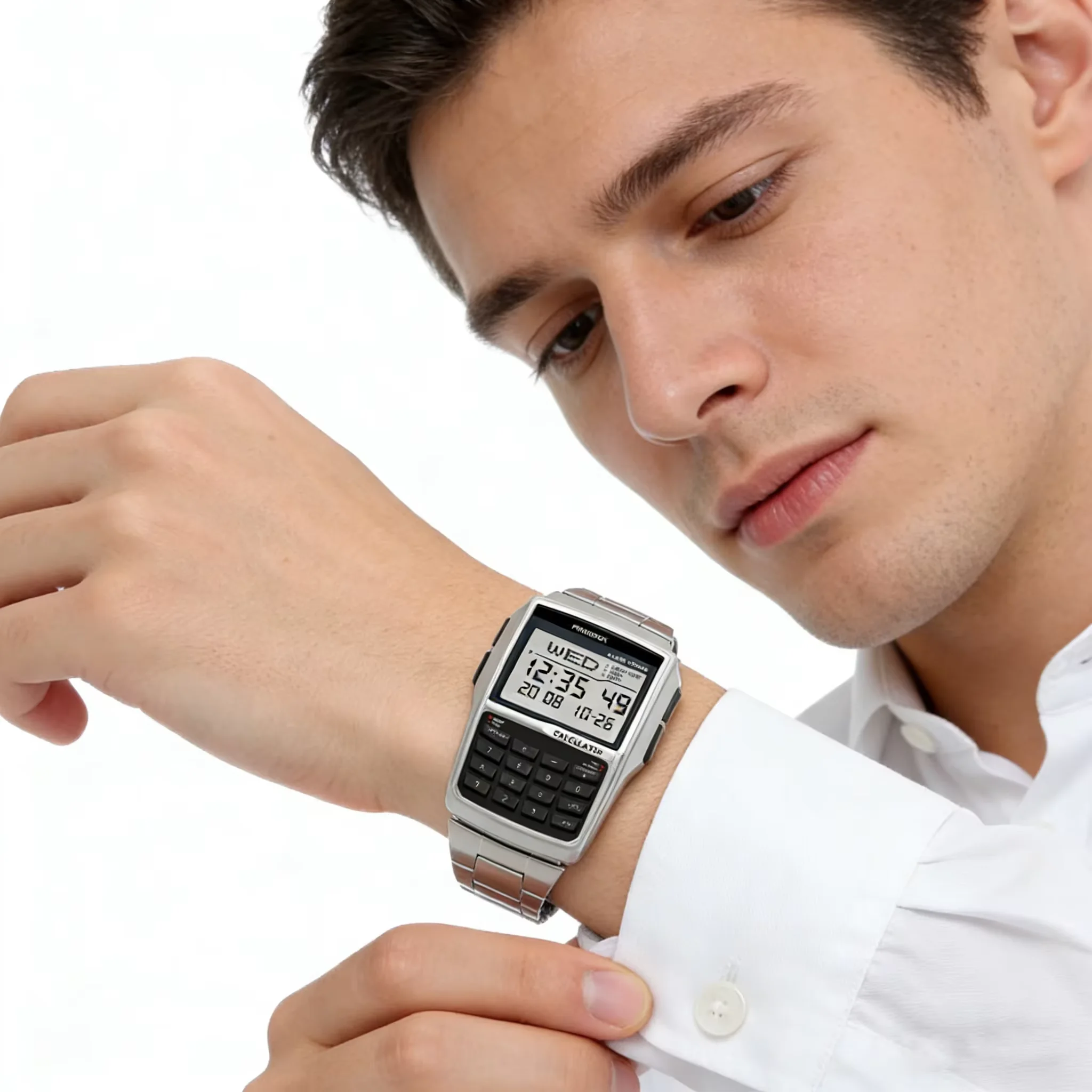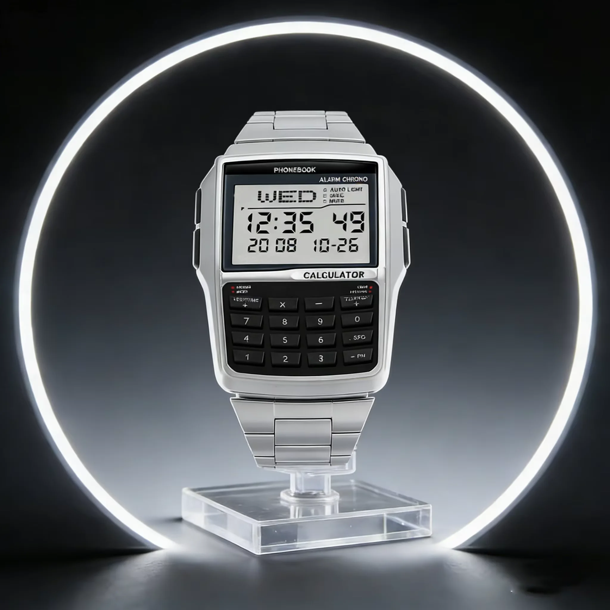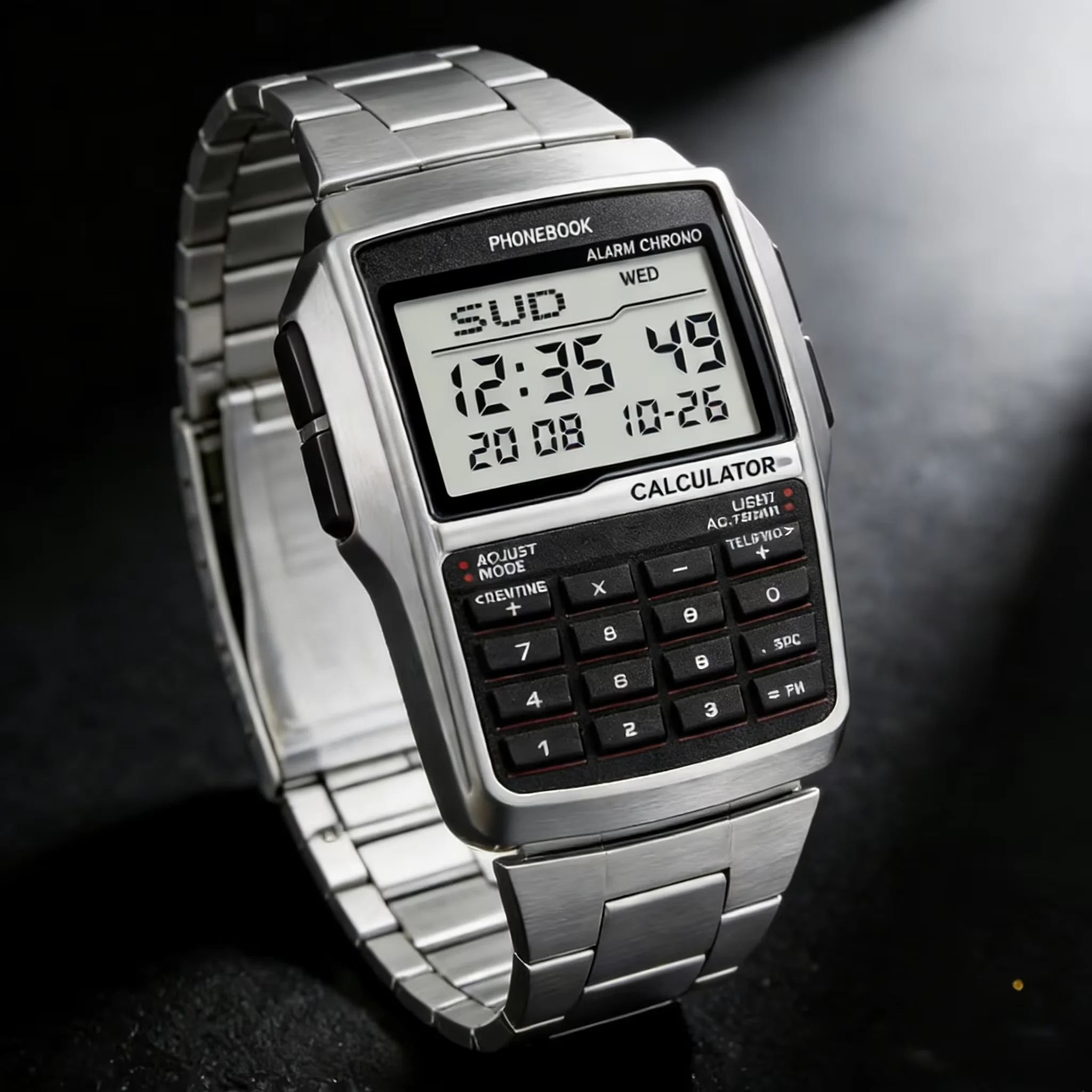 Reloj con calculadora multifuncional de acero inoxidable, reloj luminoso LED, reloj de aleación para hombre, estilo ordenador, moda de lujo