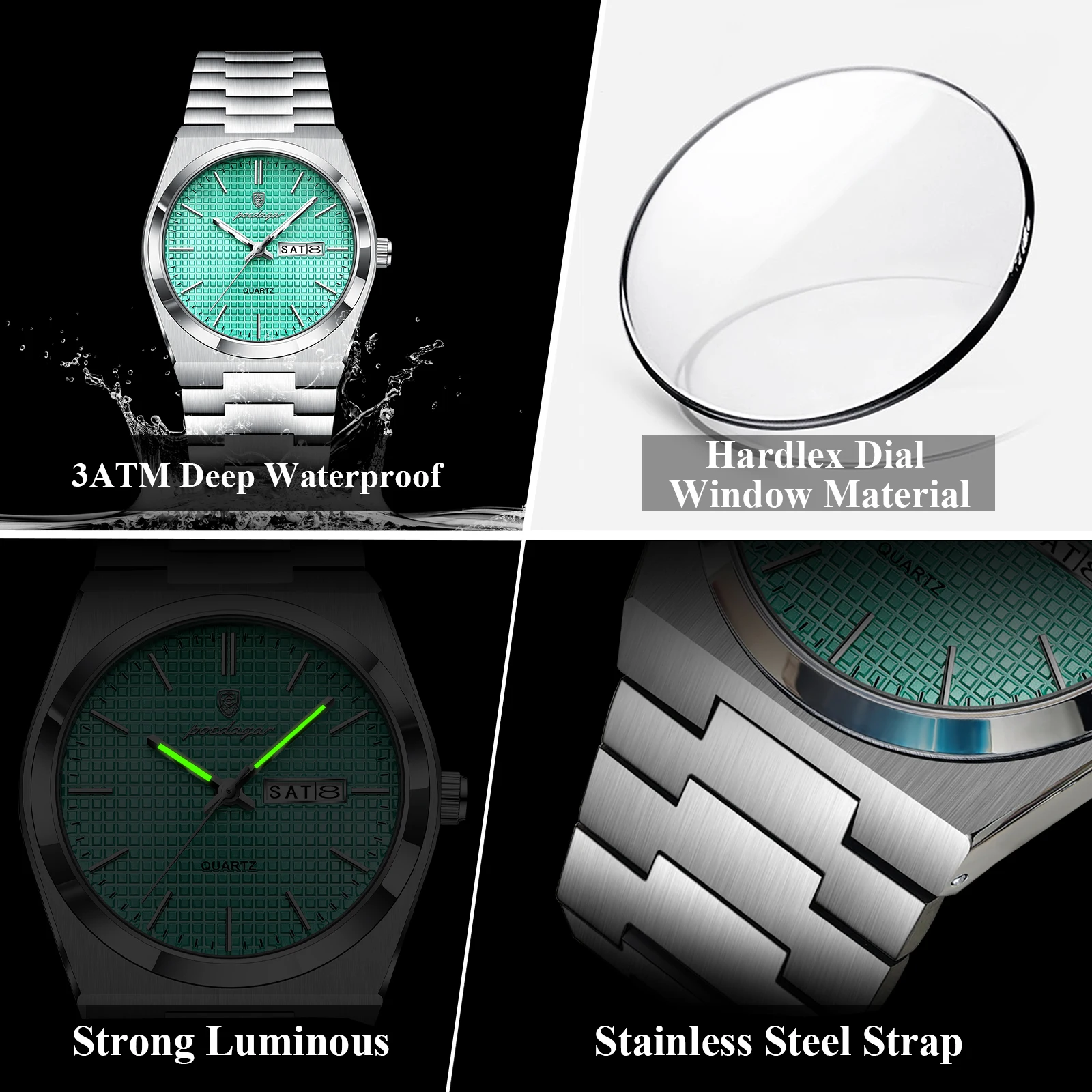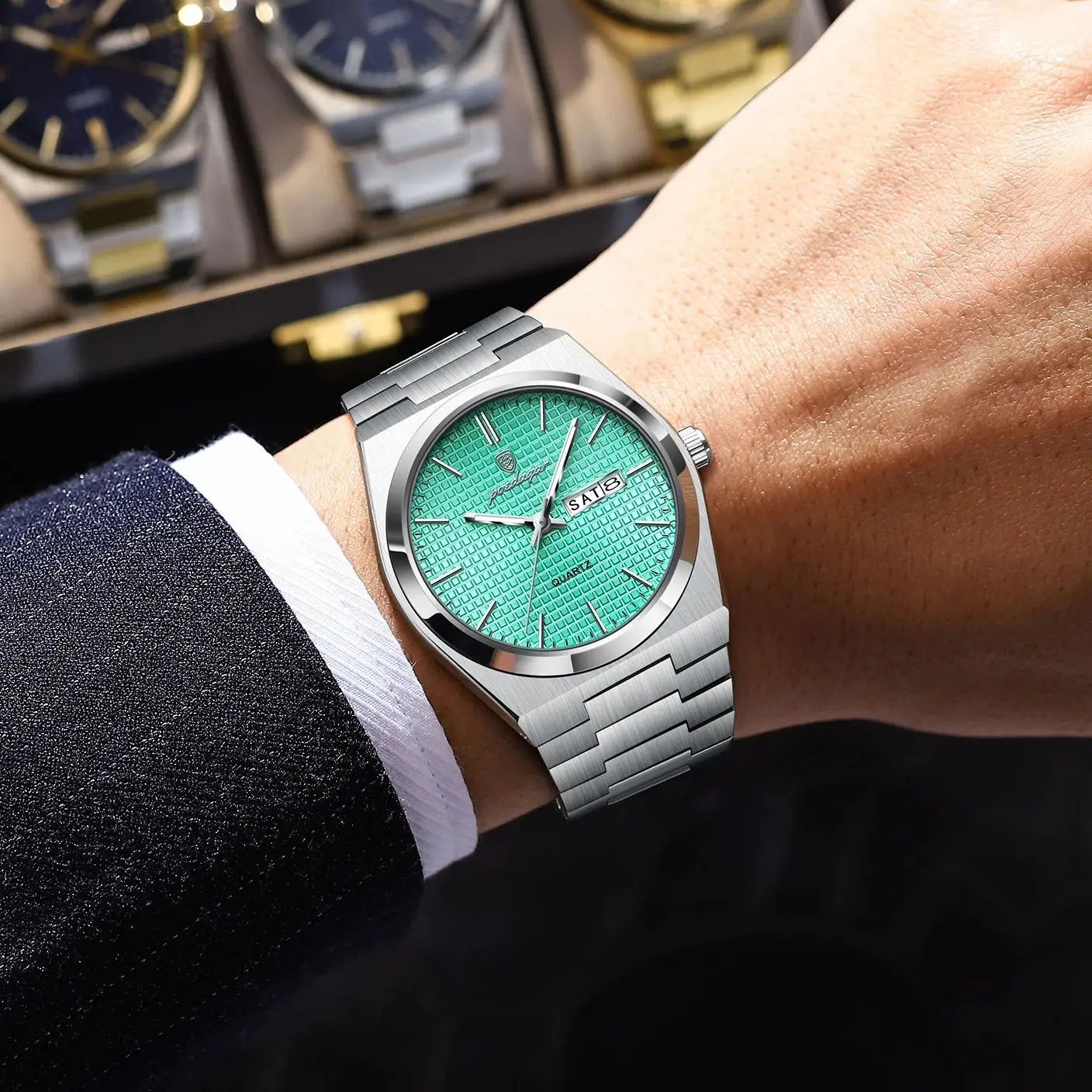 Reloj POEDAGAR de lujo a la moda para hombre, reloj de pulsera de cuarzo de acero inoxidable resistente al agua para hombre, relojes de negocios luminosos con fecha y semana para hombre