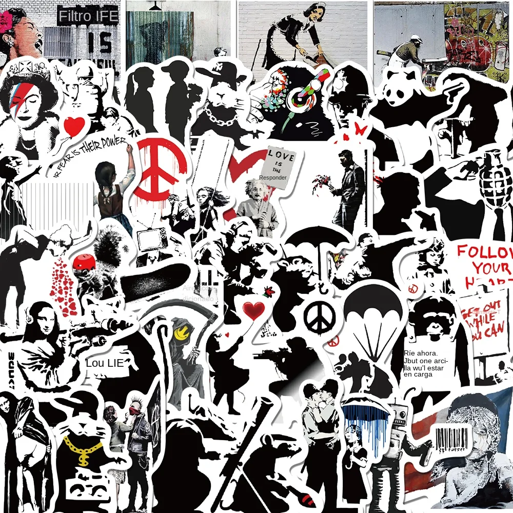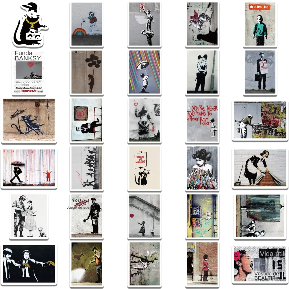 67 Uds. Pegatinas de lanzador de flores de esculturas de Banksy, calcomanías de grafiti de arte callejero para equipaje, portátil, monopatín, teléfono, bicicleta