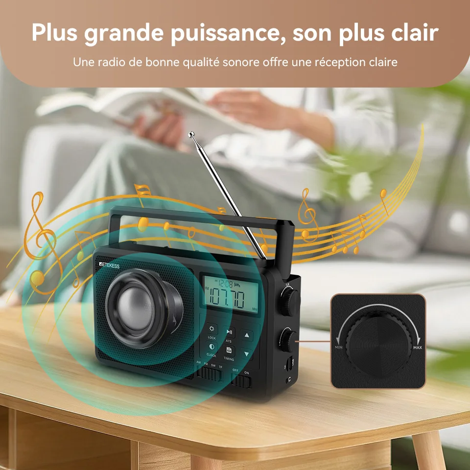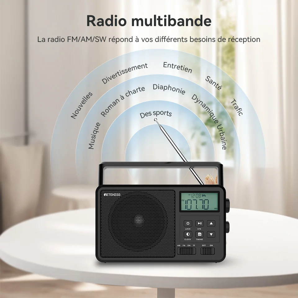 Retekess-Radio portable toutes ondes, radio à ondes courtes compatible Bluetooth, réveil à piles, carte TF, AM, FM, SW, TR638