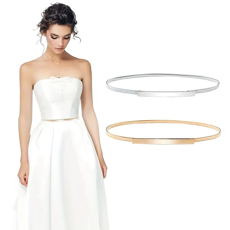 Ceintures élastiques en chaîne dorée pour femmes, taille en métal argenté, feuille extensible, ceinture dorée, jupe habillée, Riem SKinnny