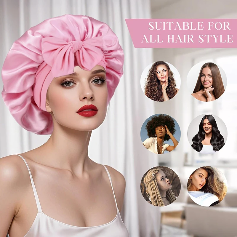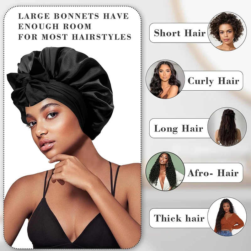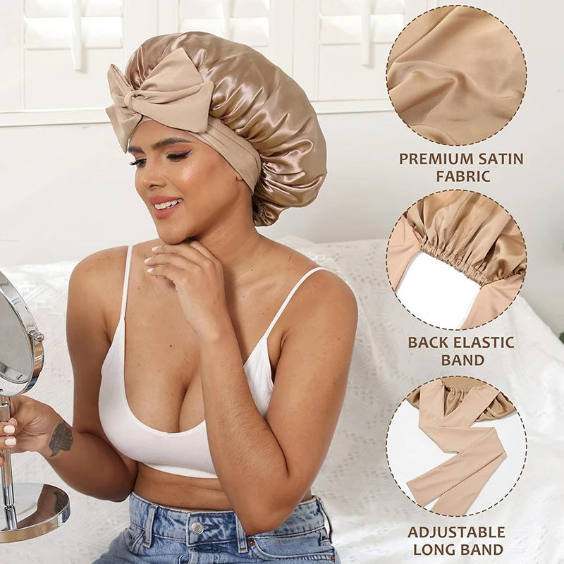 Bonnet de nuit en satin pour femmes, confortable, respirant, doux, pour cheveux bouclés, avec large bord élastique