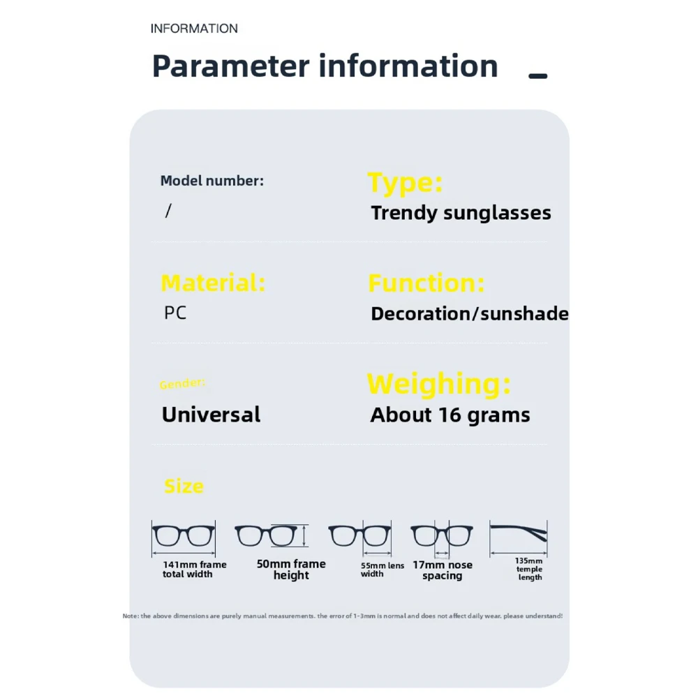1 paire de miroir lumineux plat à grande monture PC carrée pour femmes