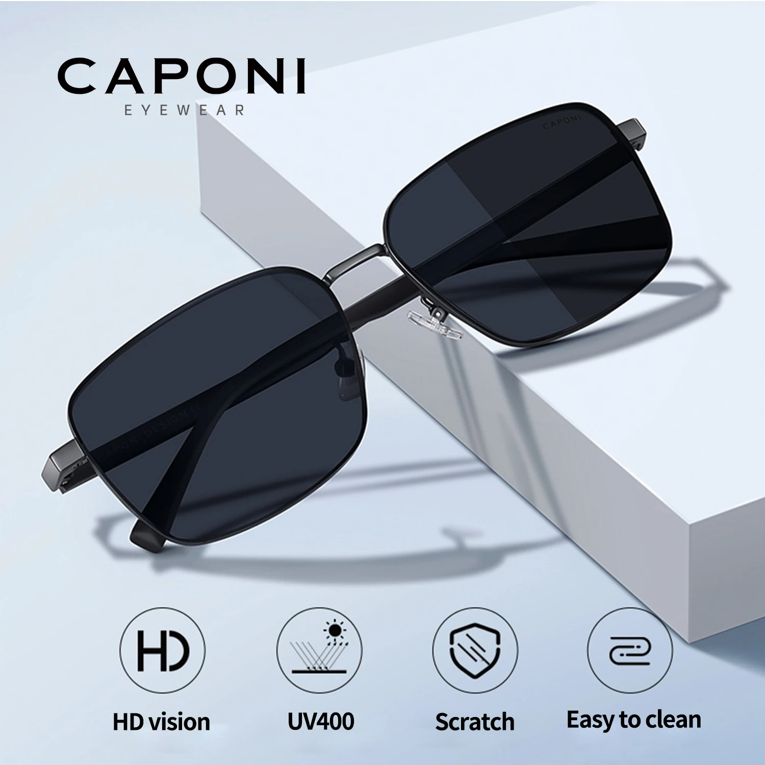 CAPONI-Lunettes de soleil polarisées pour homme, verres carrés photochromiques pour l'extérieur, la conduite, protection UV400, marque de créateur BS24704