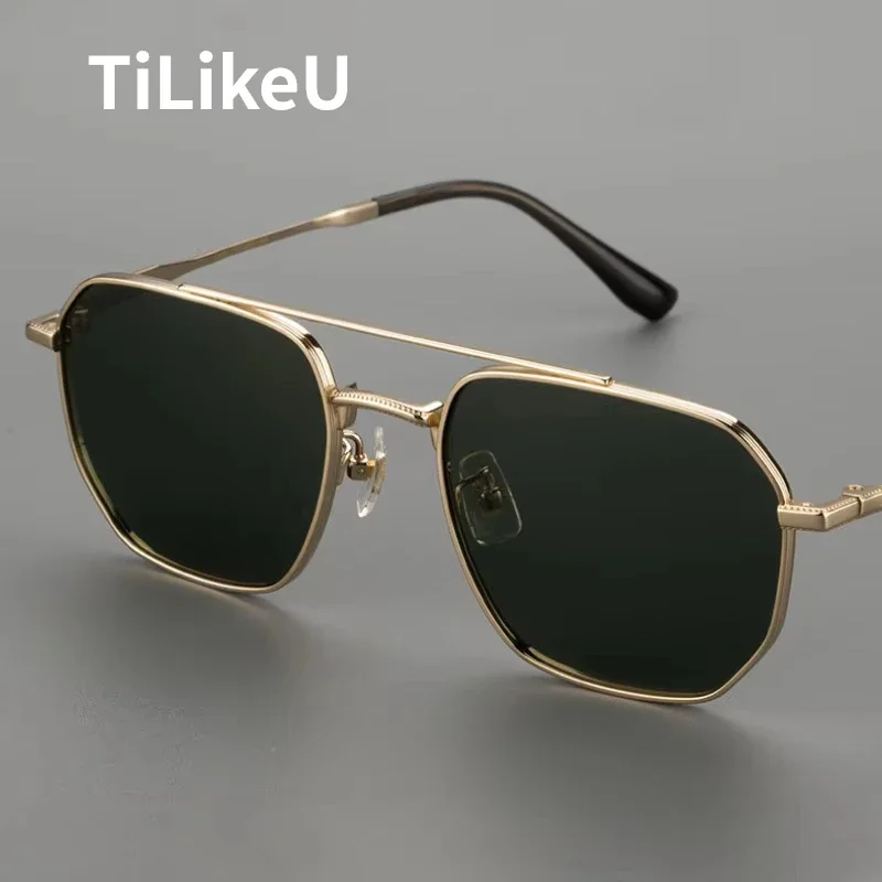 Lunettes de soleil polarisées classiques en titane pur pour hommes, pilote à Double pont, pour la conduite en plein air, Vision nocturne, Anti-éblouissement, pêche, UV400