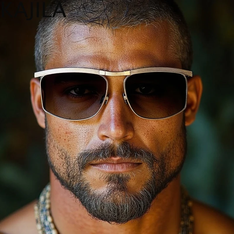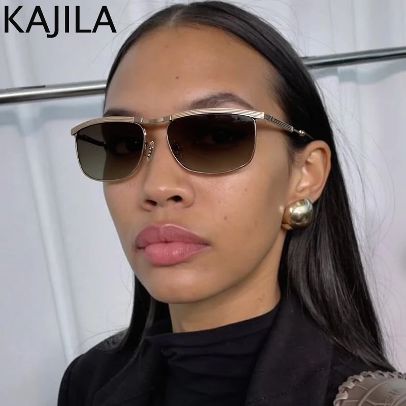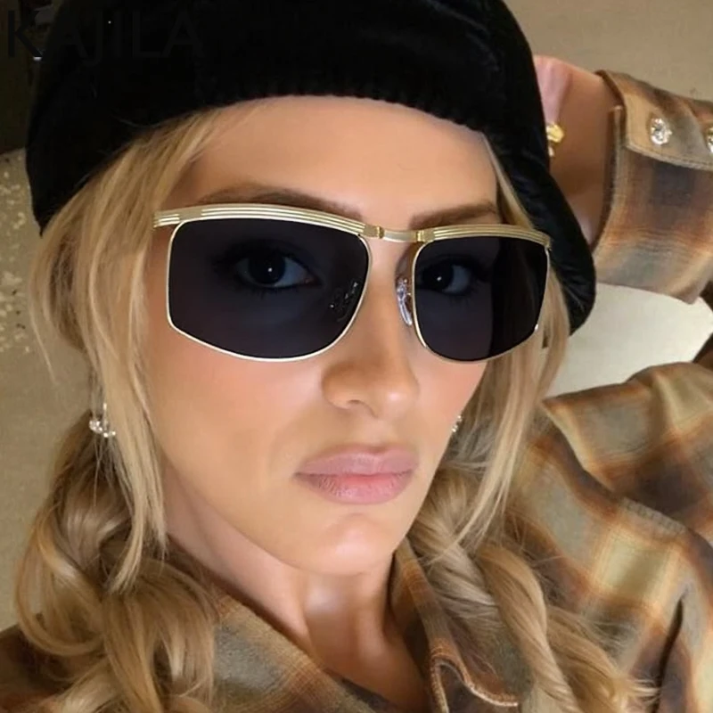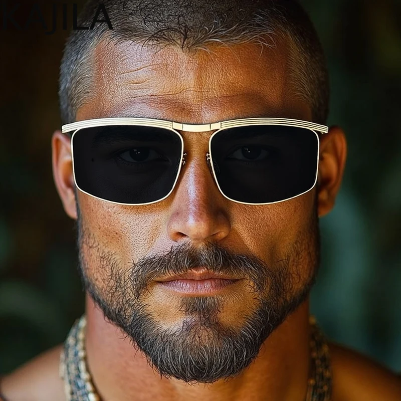 Lunettes de soleil rectangulaires surdimensionnées pour hommes et femmes, marque de luxe classique Punk, monture métallique, UV400, 2026