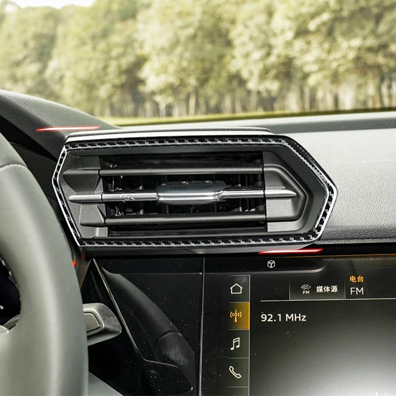 Cadre de Sortie de Climatisation de Console Centrale Avant de Voiture, Garniture Décorative en Acier Inoxydable pour Audi A3 8Y 2021-2022, Carbone Bergame