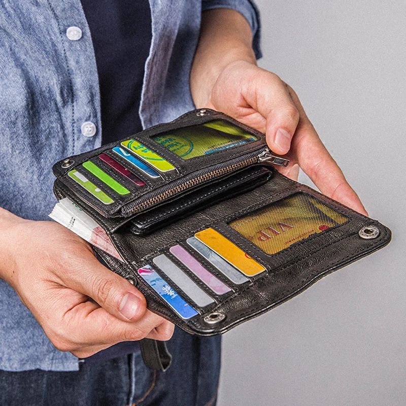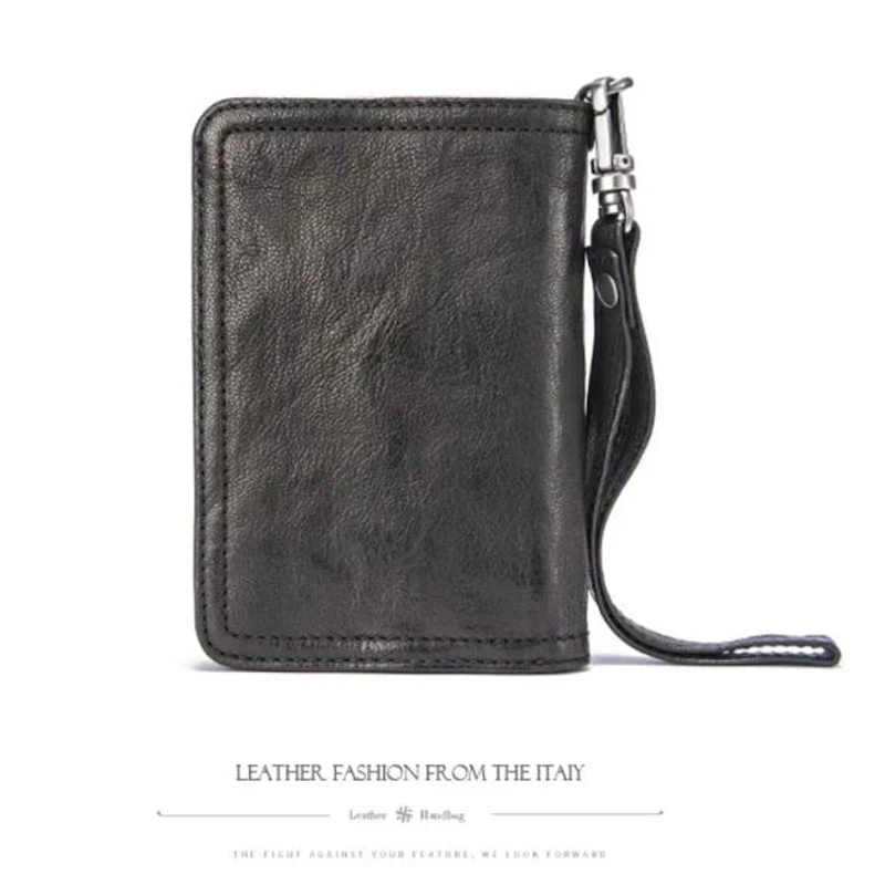 Mode en cuir véritable hommes portefeuille pochette sac à main mâle à deux volets pinces à billets avec moraillon grande capacité carte portefeuille court avec poche zippée