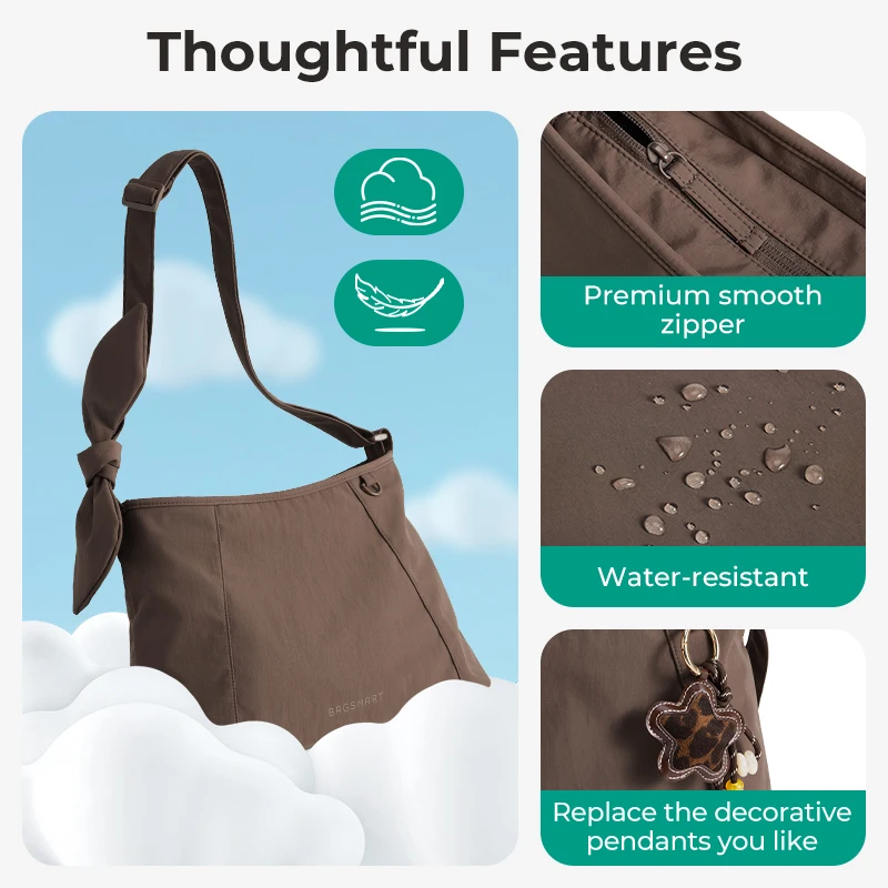 BAGSMART Sac bandoulière grande capacité pour femme, sac à main décontracté, sac de voyage étanche, sac à bandoulière multifonction pour la nuit