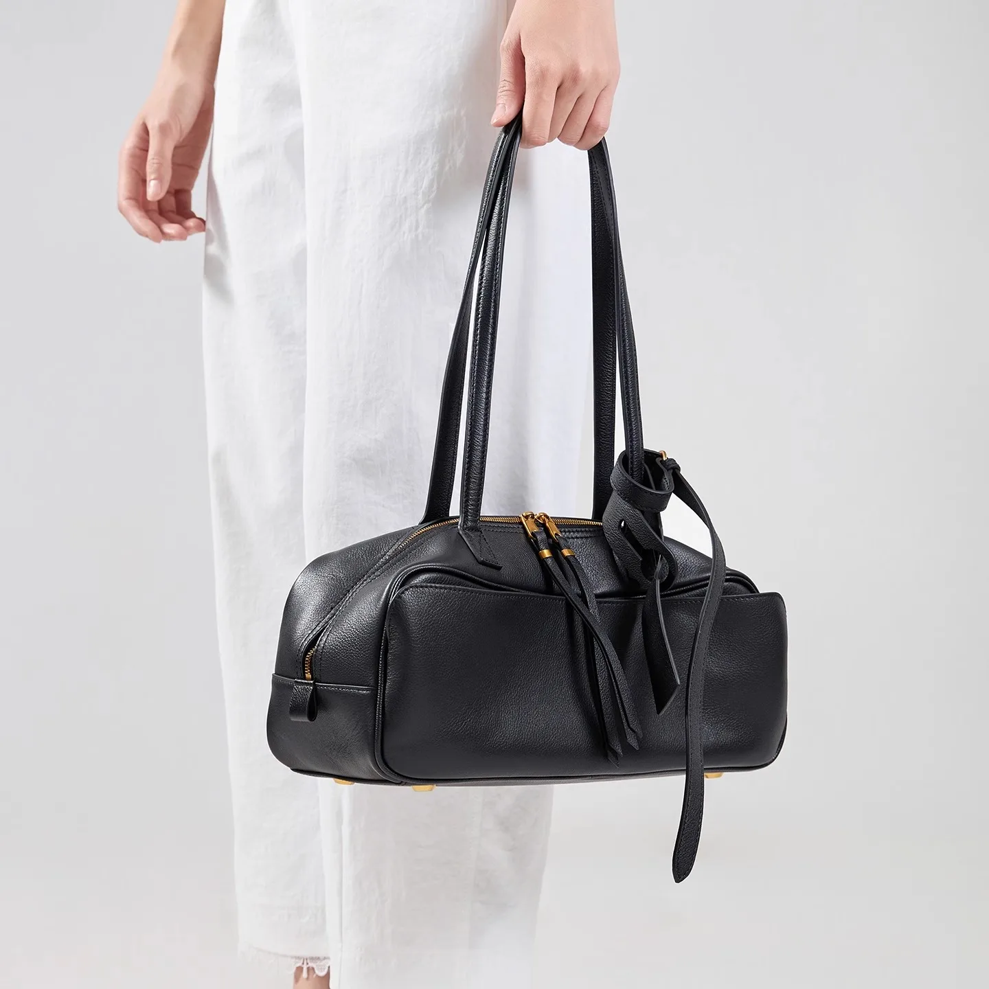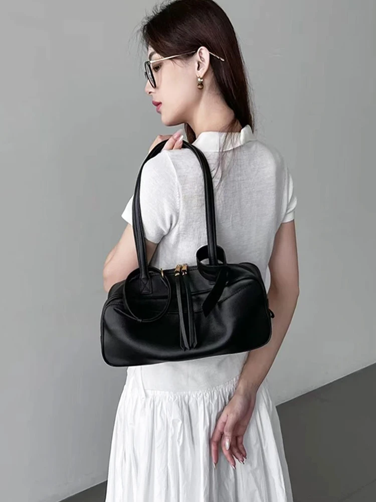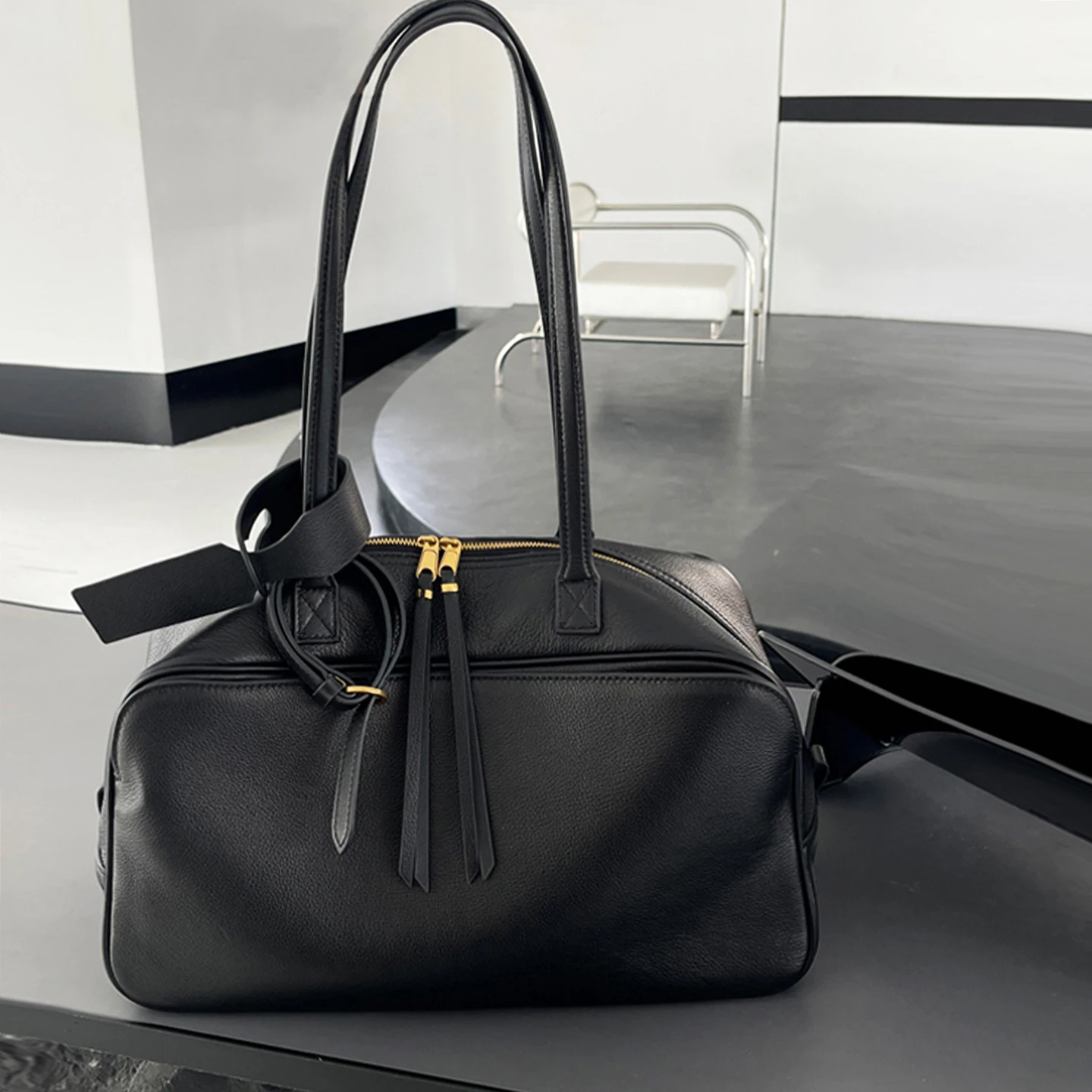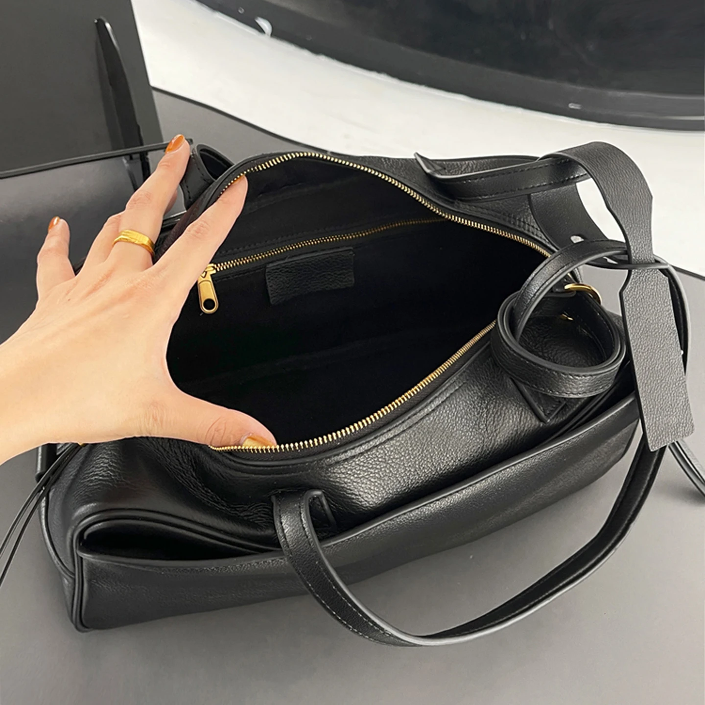 Sac d'oreiller en cuir véritable pour femmes, version haute, sac de bowling en cuir de vache à première couche, grande capacité, assorti avec tout, nouvelle collection 2025