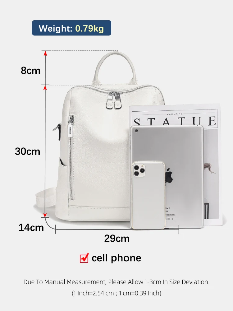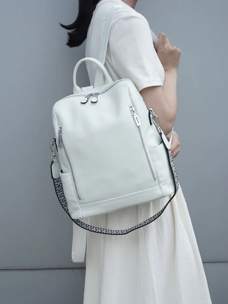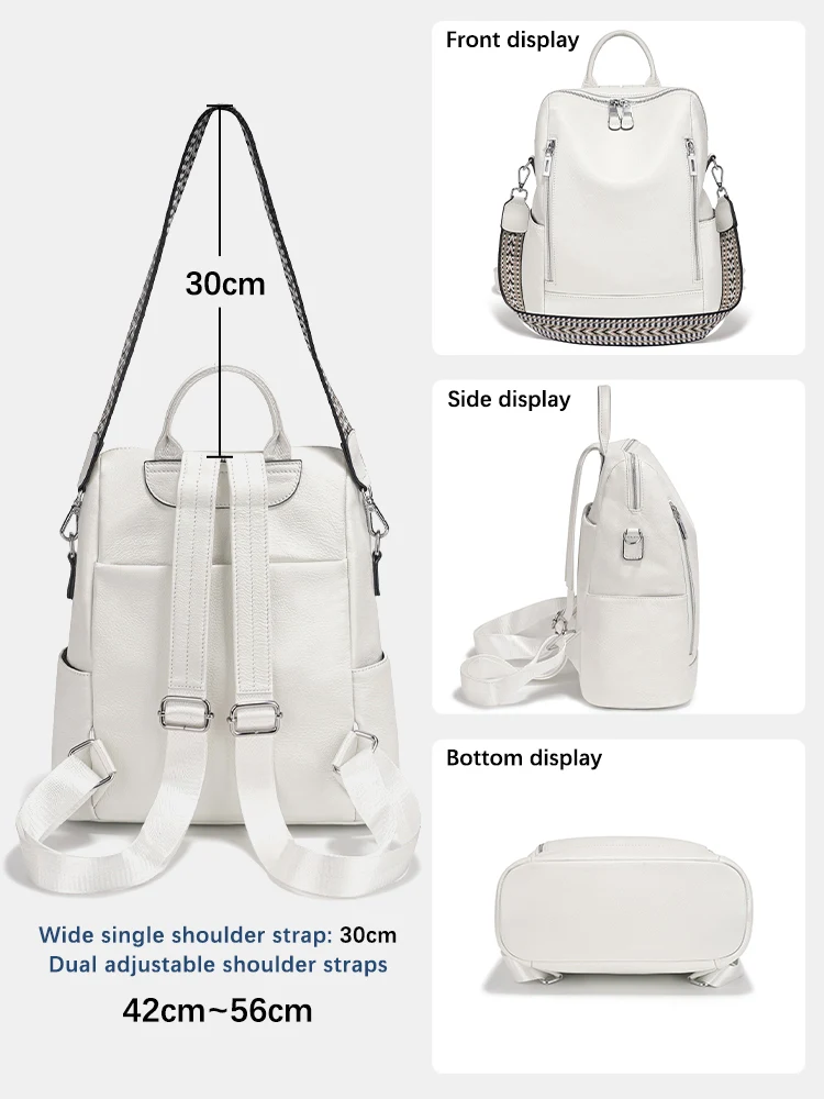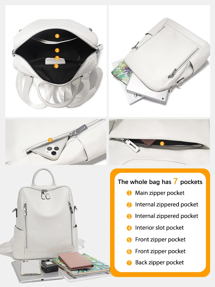 Zency Fashion Sac à dos en cuir véritable, sac à dos multi-poches, sac de voyage convertible, sac à bandoulière pour les trajets domicile-travail en automne et en hiver