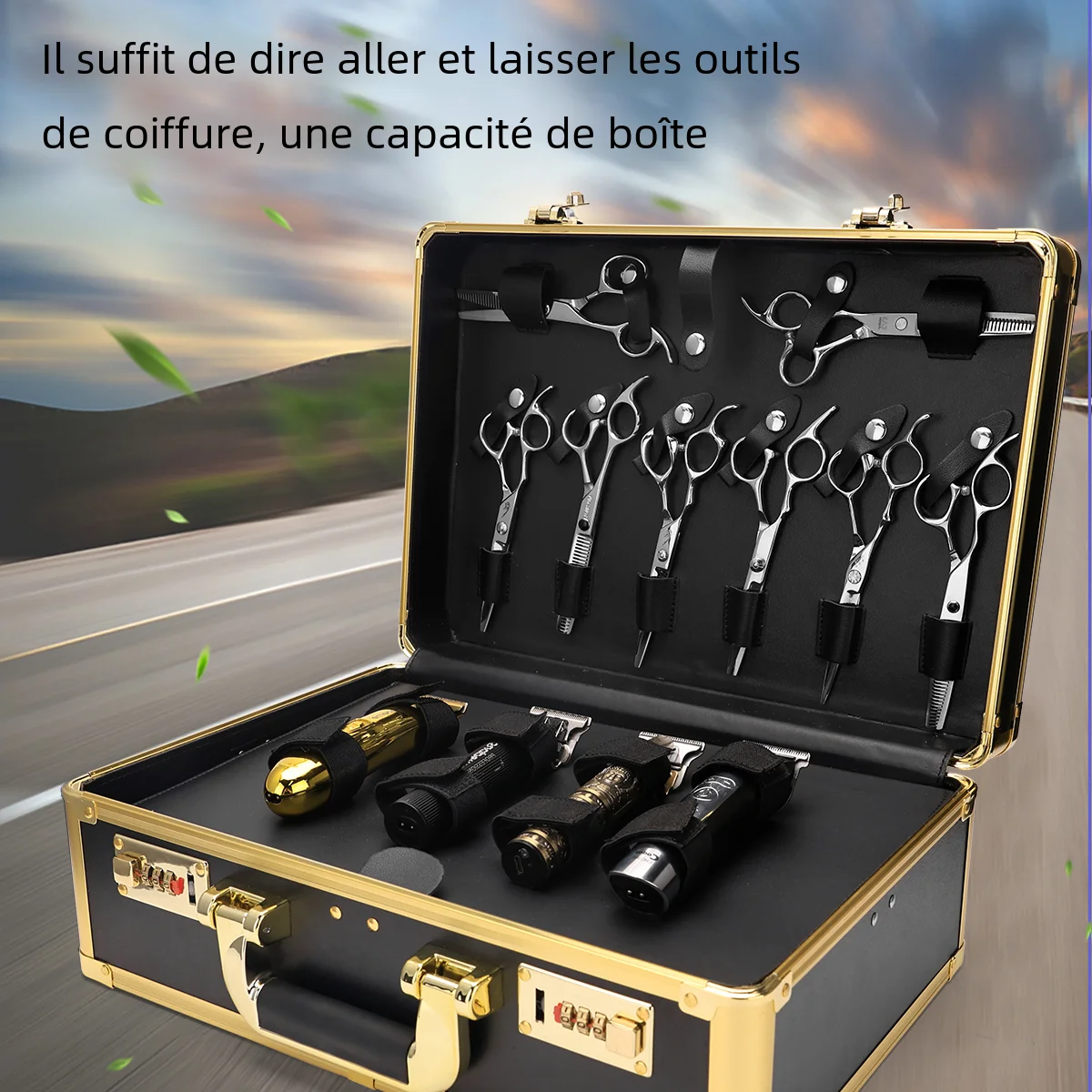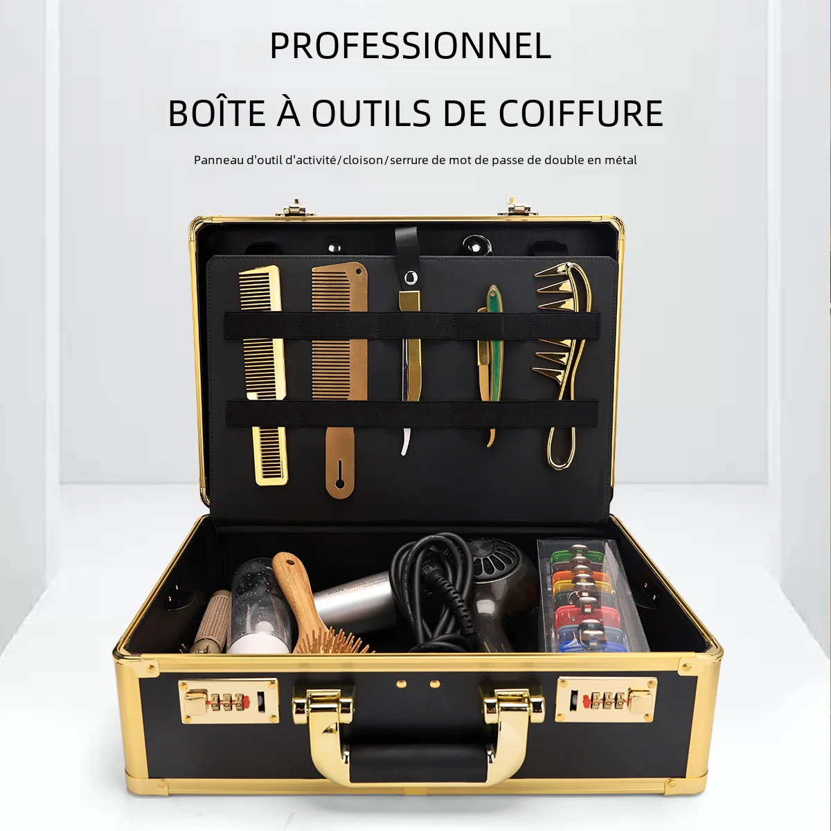 Boîte de rangement avec verrouillage par mot de passe, valise portable en aluminium, boîte de transport d'outils de salon de coiffure professionnelle, grande capacité