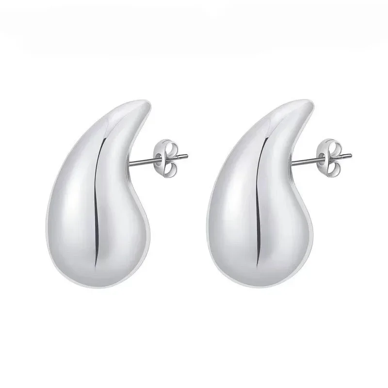 925 argent Sterling 18K plaqué or gros dôme goutte d'eau boucle d'oreille pour les femmes Vintage brillant épais larme boucles d'oreilles bijoux