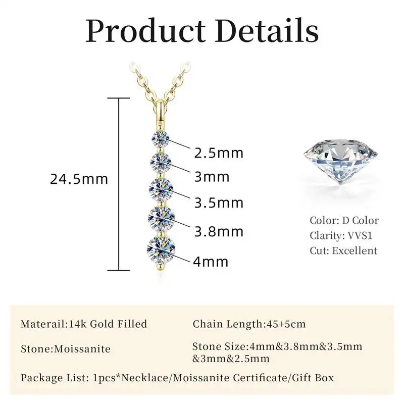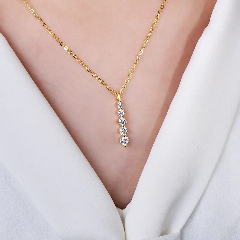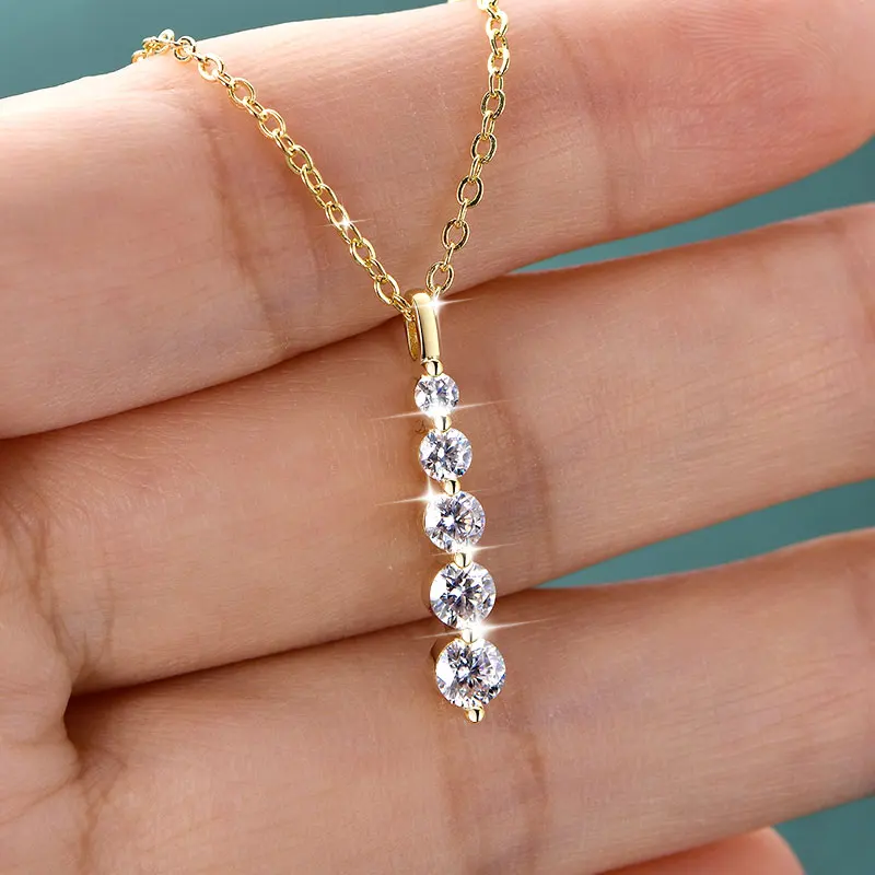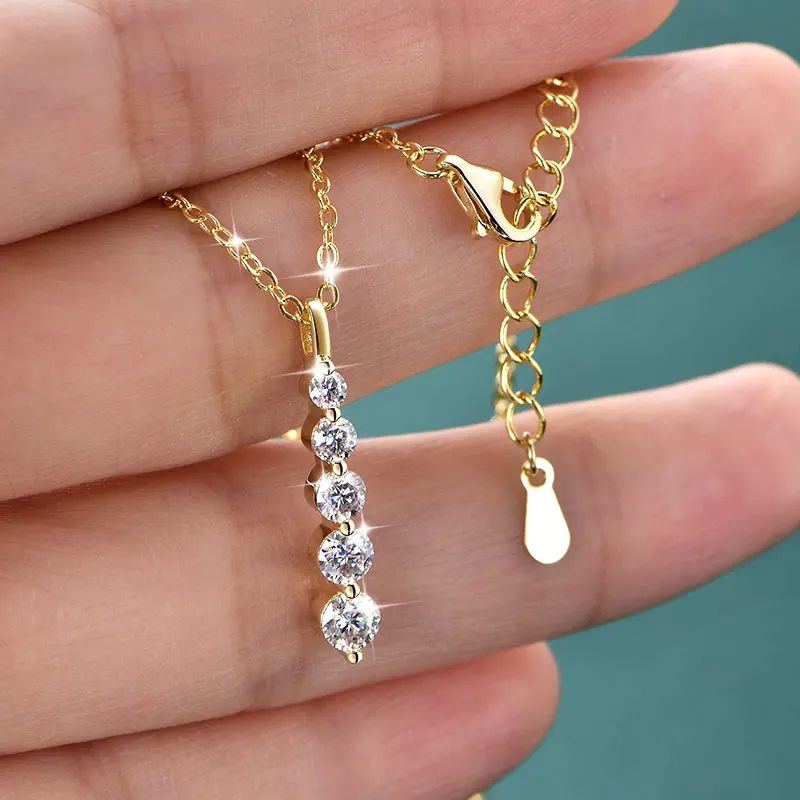 Lnngy – collier brillant en Moissanite à 5 pierres, collier à pendentif long en or rempli de 14 carats pour femmes, accessoires de bijoux féminins