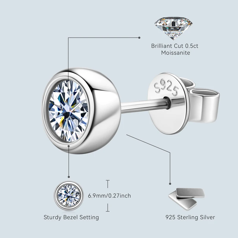 Lnngy-Boucles d'oreilles en argent regardé 925 pour femme, boucle d'oreille à bulles, lunette ronde Moissanite, simple, bijoux D-document, 5mm, 6.5mm