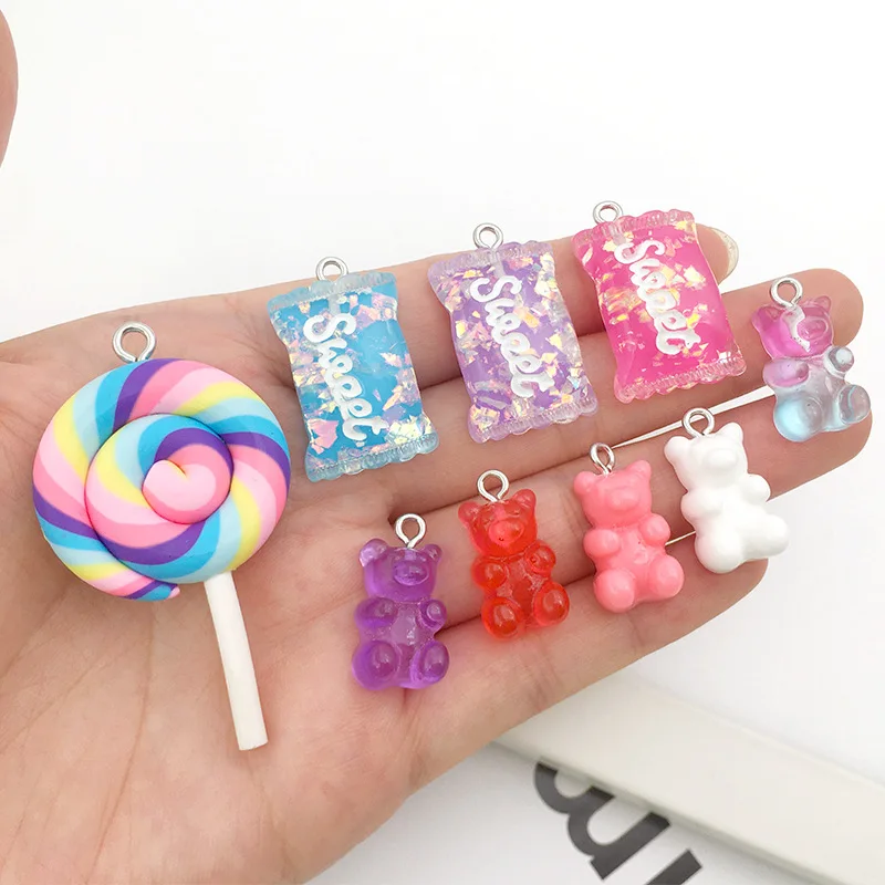 32/64 pièces/lot mixte ours bonbon sucette pendentif breloques ours en résine colorés pour collier Bracelet boucles d'oreilles bijoux accessoires
