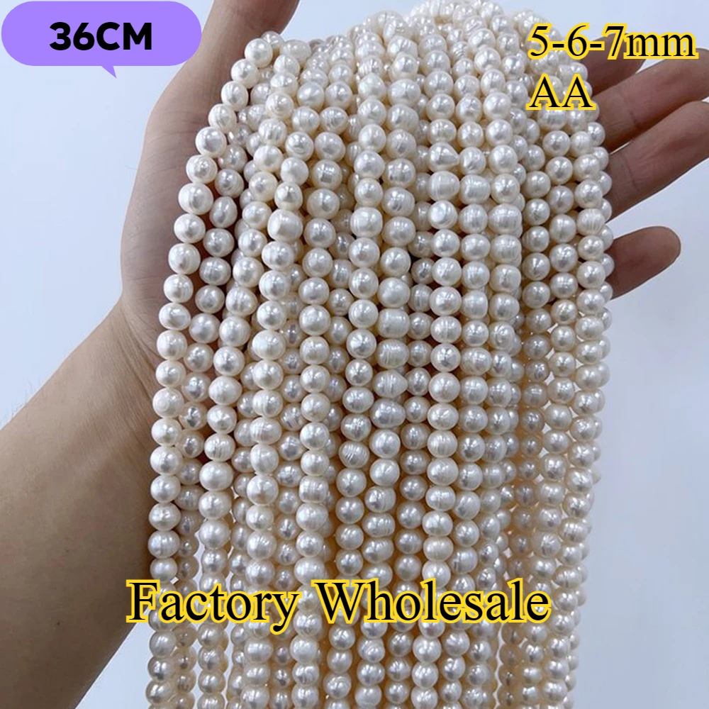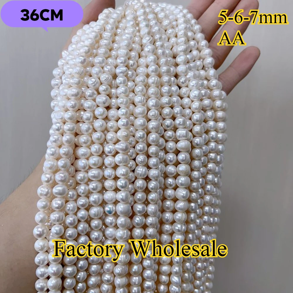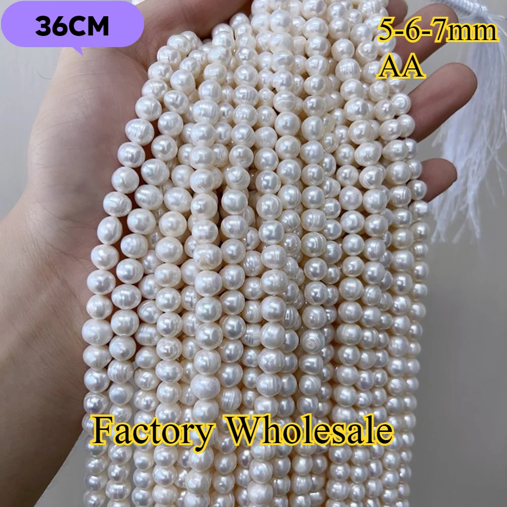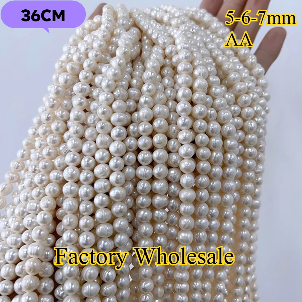 5-6-7mm AA radieux blanc rond fin naturel perle d'eau douce isolé perle bijoux faire collier à faire soi-même Bracelet accessoires femmes