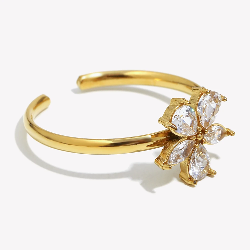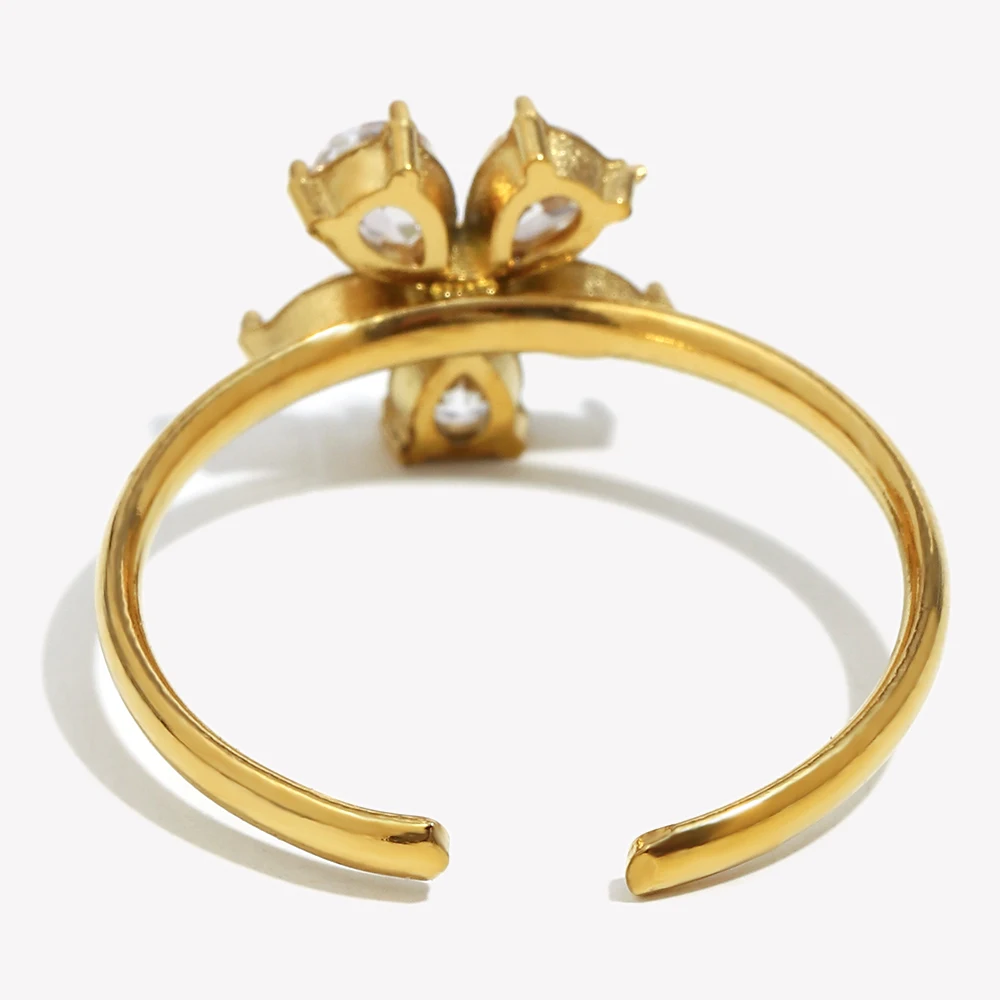 Bague d'ouverture de fleur à cinq pétales de Zircon blanc, bijoux hypoallergéniques plaqués or 18 carats, décoration en acier inoxydable 316L