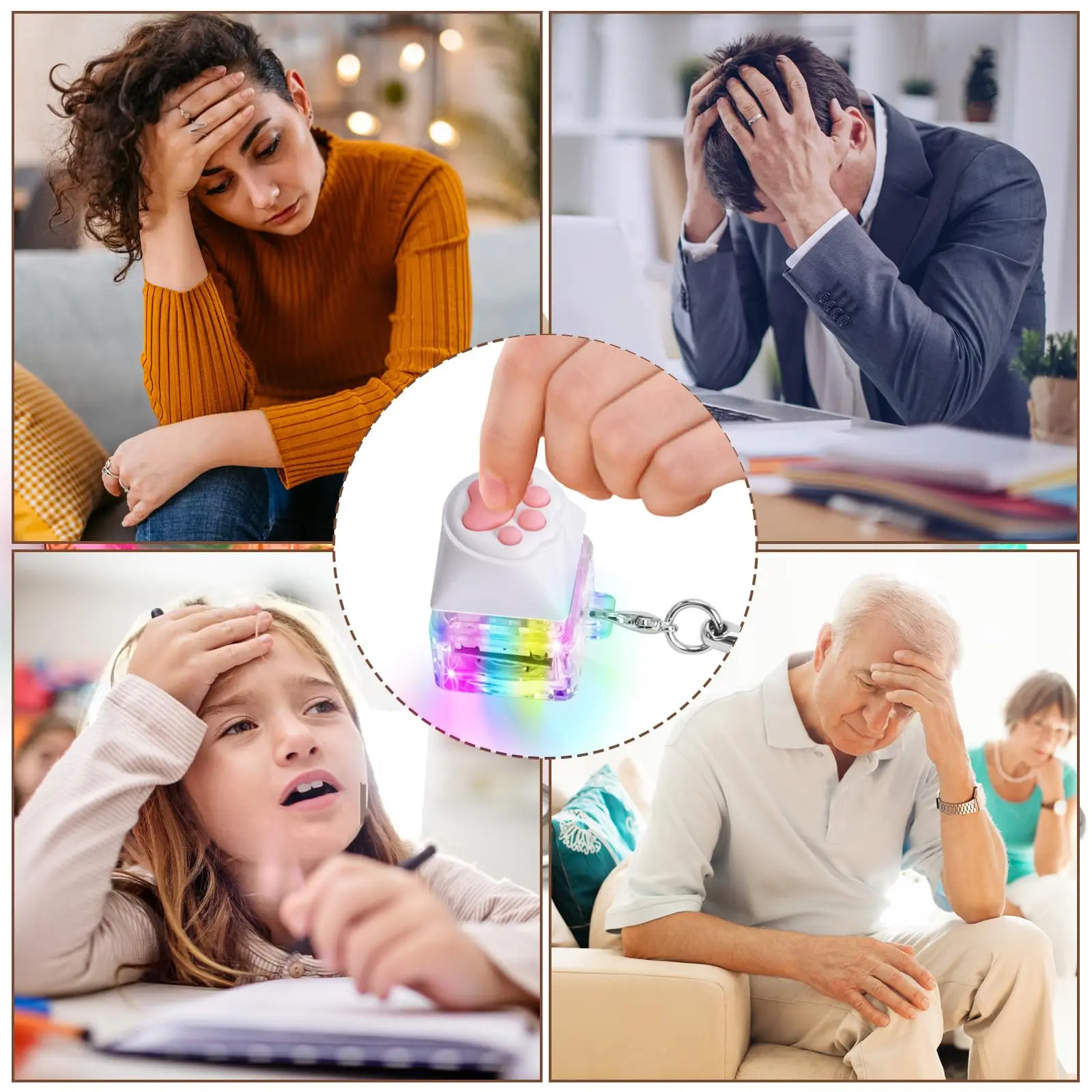 Catpaw clavier Clicker porte-clés clavier Fidget jouets avec lumière LED sensorielle amusant doigt jouets clé accessoires sac pendentif