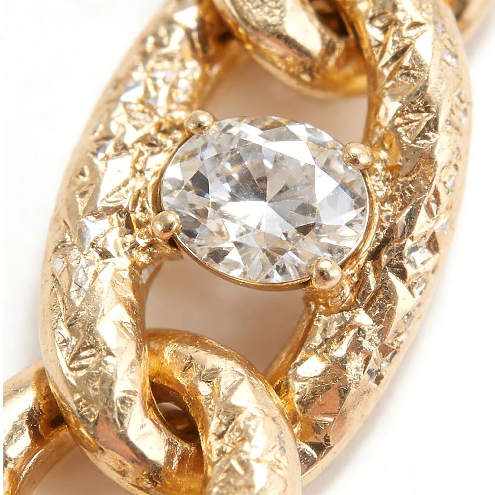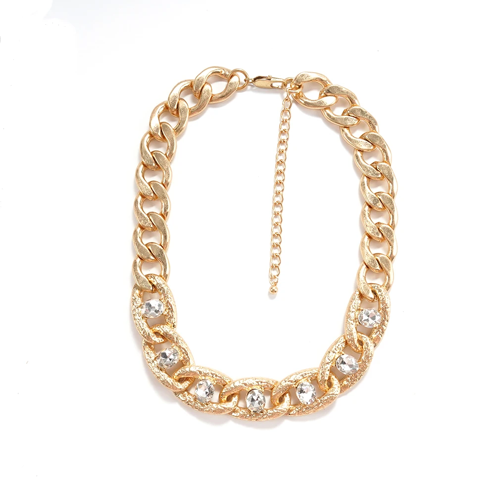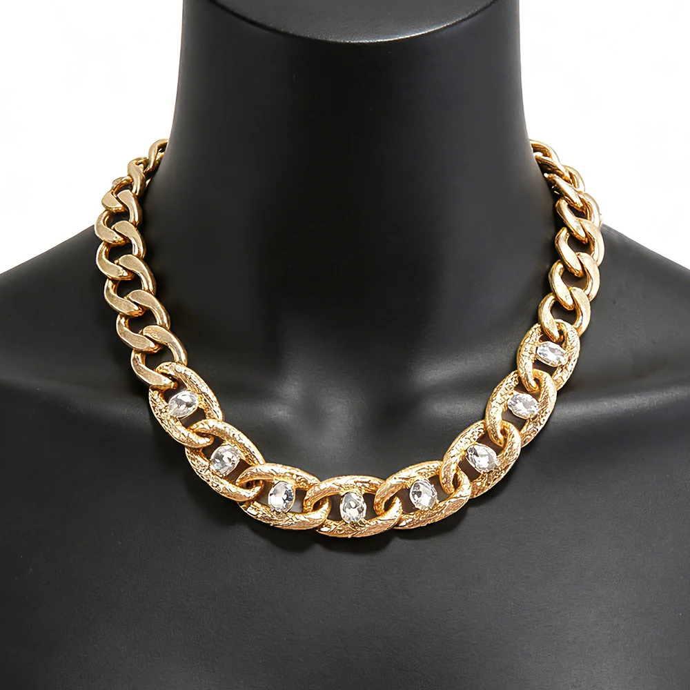 Chaîne gourmette ornée de cristaux, accessoire de mode dimensionnel et élégant, idéal pour les tenues stylées et les brunches.
