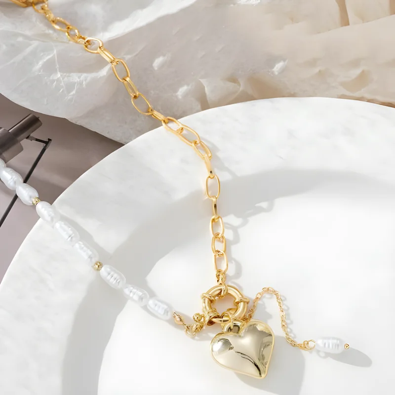 Collier pendentif coeur CCB pour femme, fausse perle géométrique, JoUnquie, bijoux élégants, mode Leon, tendance, vente en gros
