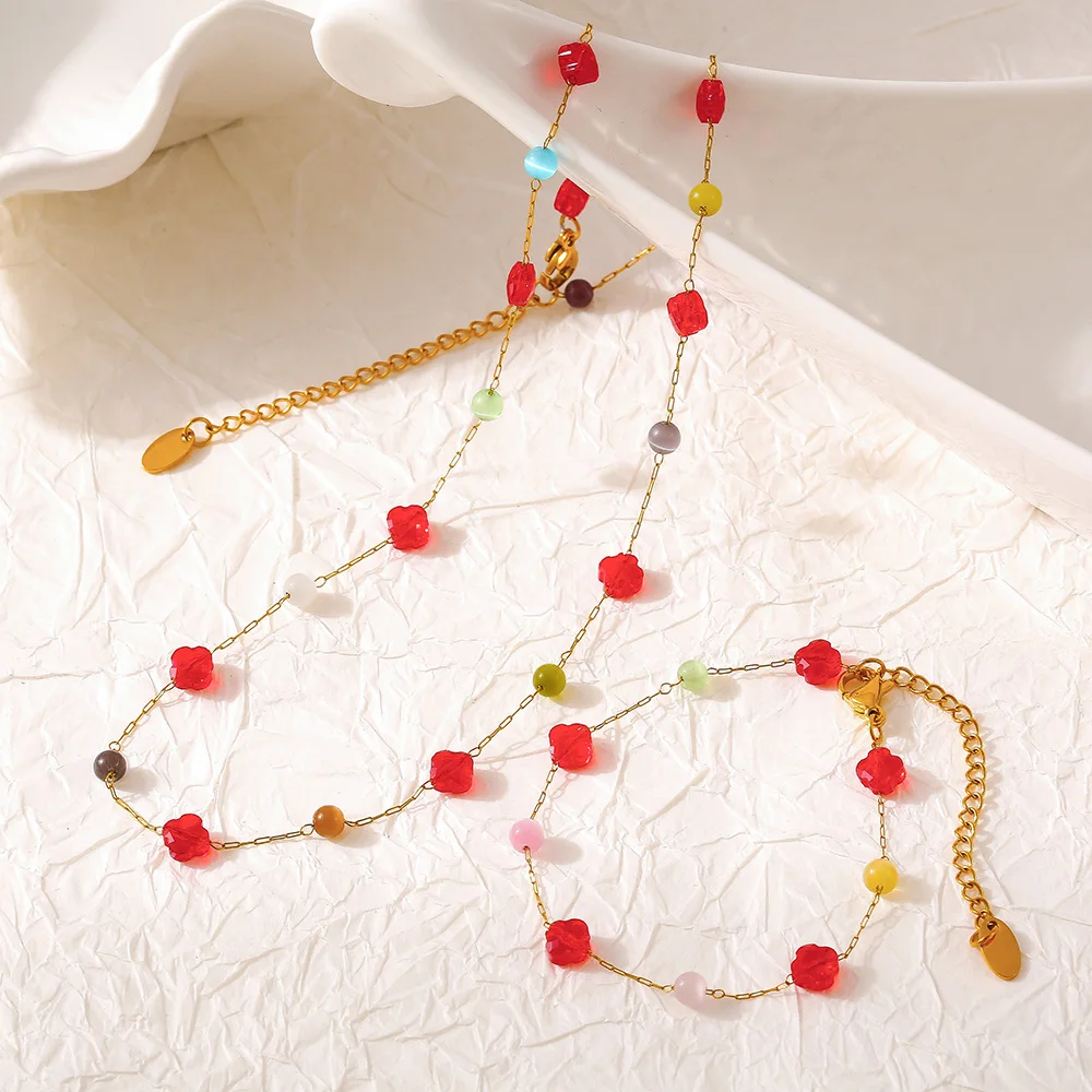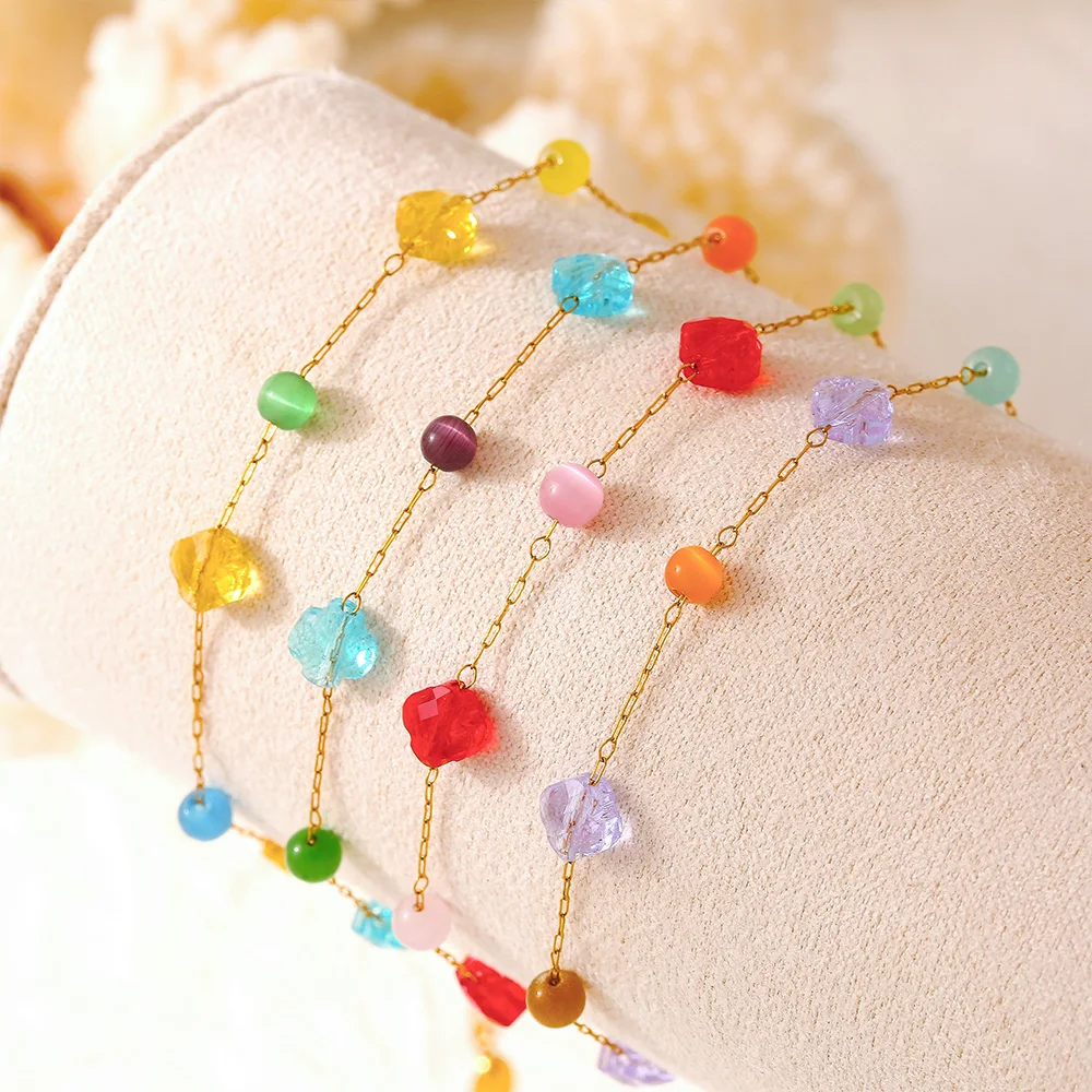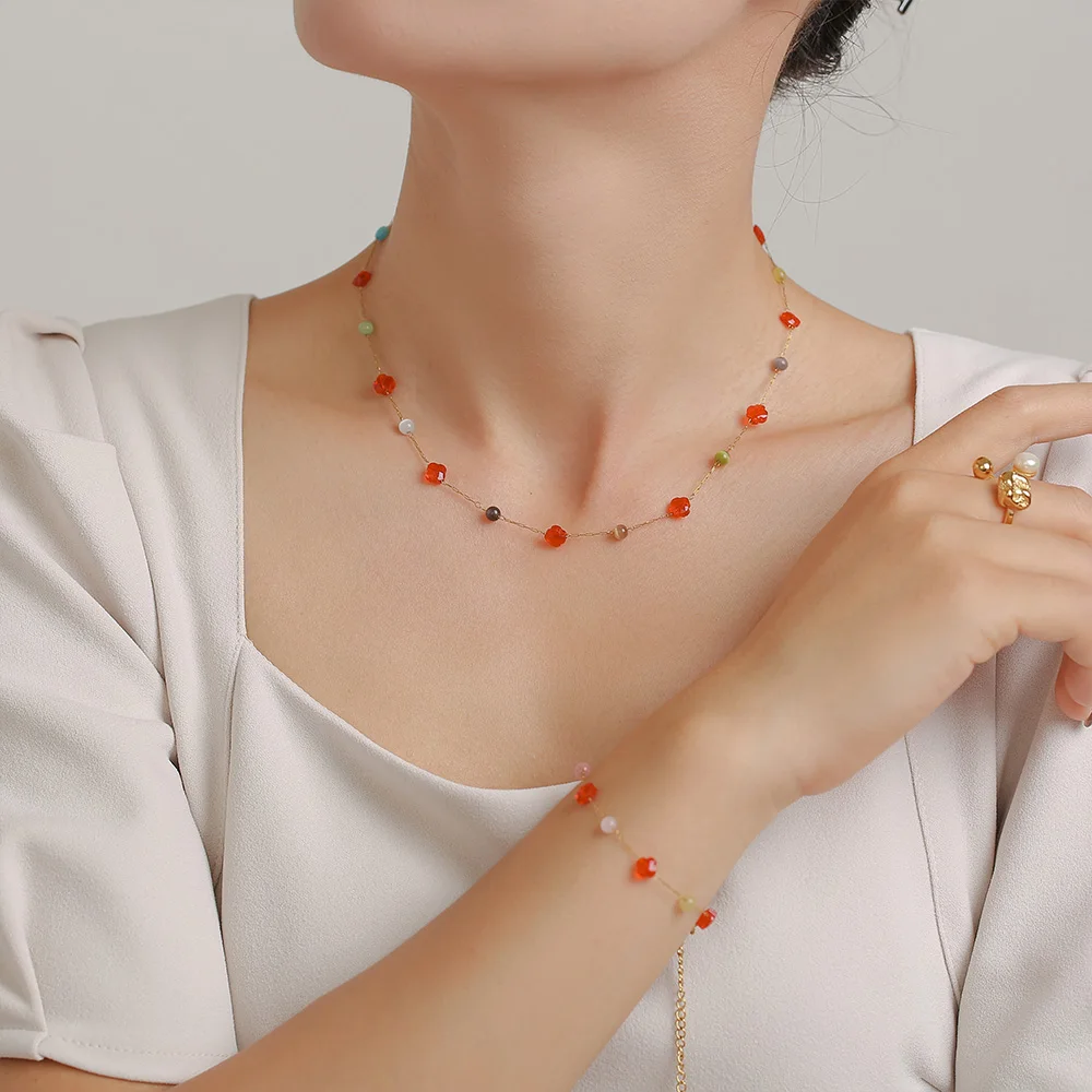 Nivora – colliers et Bracelets en pierre naturelle pour femmes, chaîne multicolore en acier inoxydable, ras du cou, ensembles de bijoux faits à la main