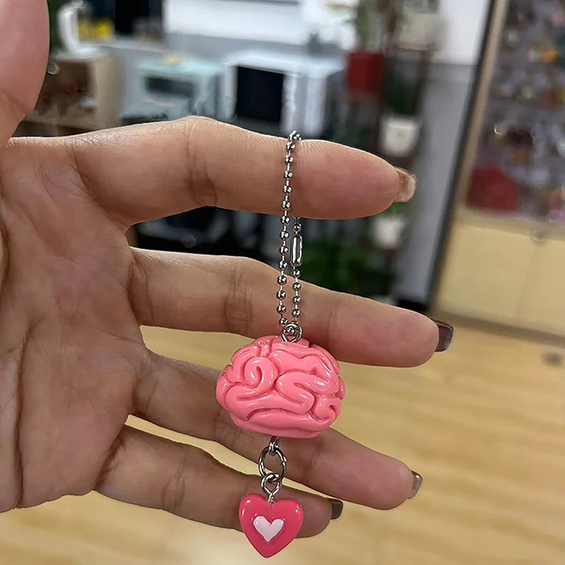 Porte-clés de Simulation créative d'amour de cerveau, décoration de sac Punk Halloween pour femmes et hommes, cadeaux de vacances gothiques