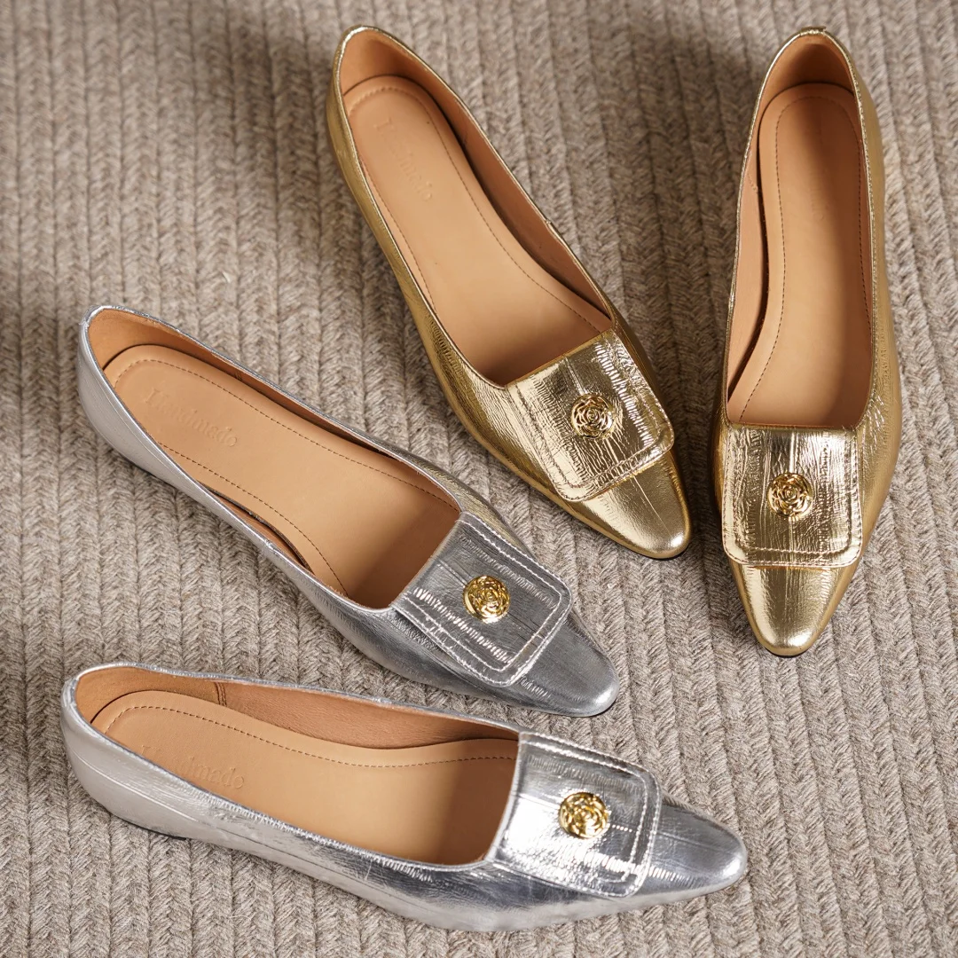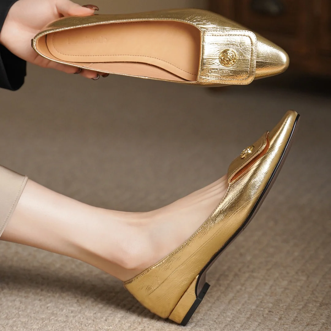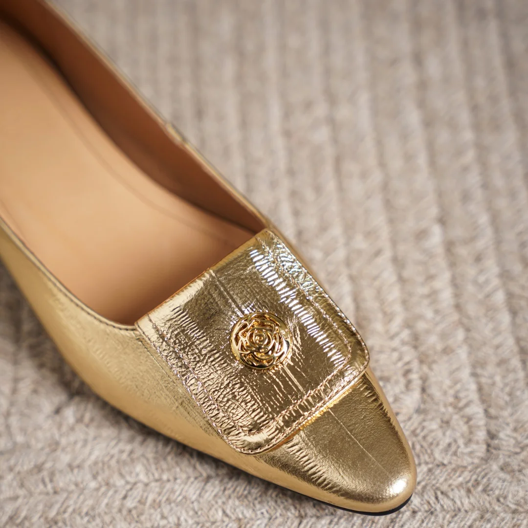 Chaussures à bout pointu en peau de mouton pour femmes, or, argent, boucle en métal, ald-on uro, dames douces et élégantes, talon chaton de 2cm, haute qualité, vente