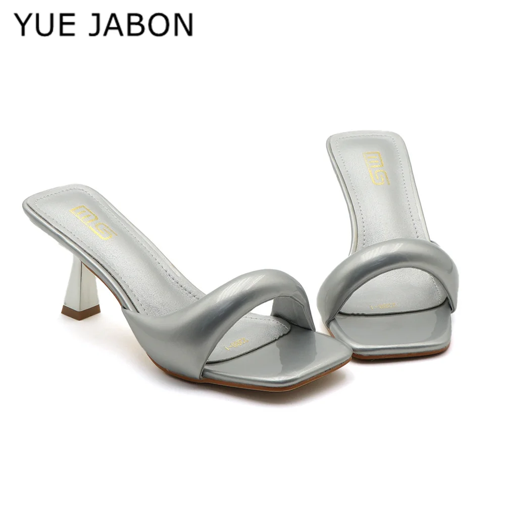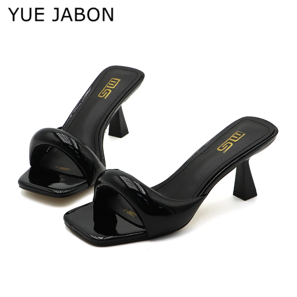 Pantoufles à talons hauts noirs et rouges pour femmes, sandales à bout ouvert, escarpins à bout carré, sandales d'été simples de styliste