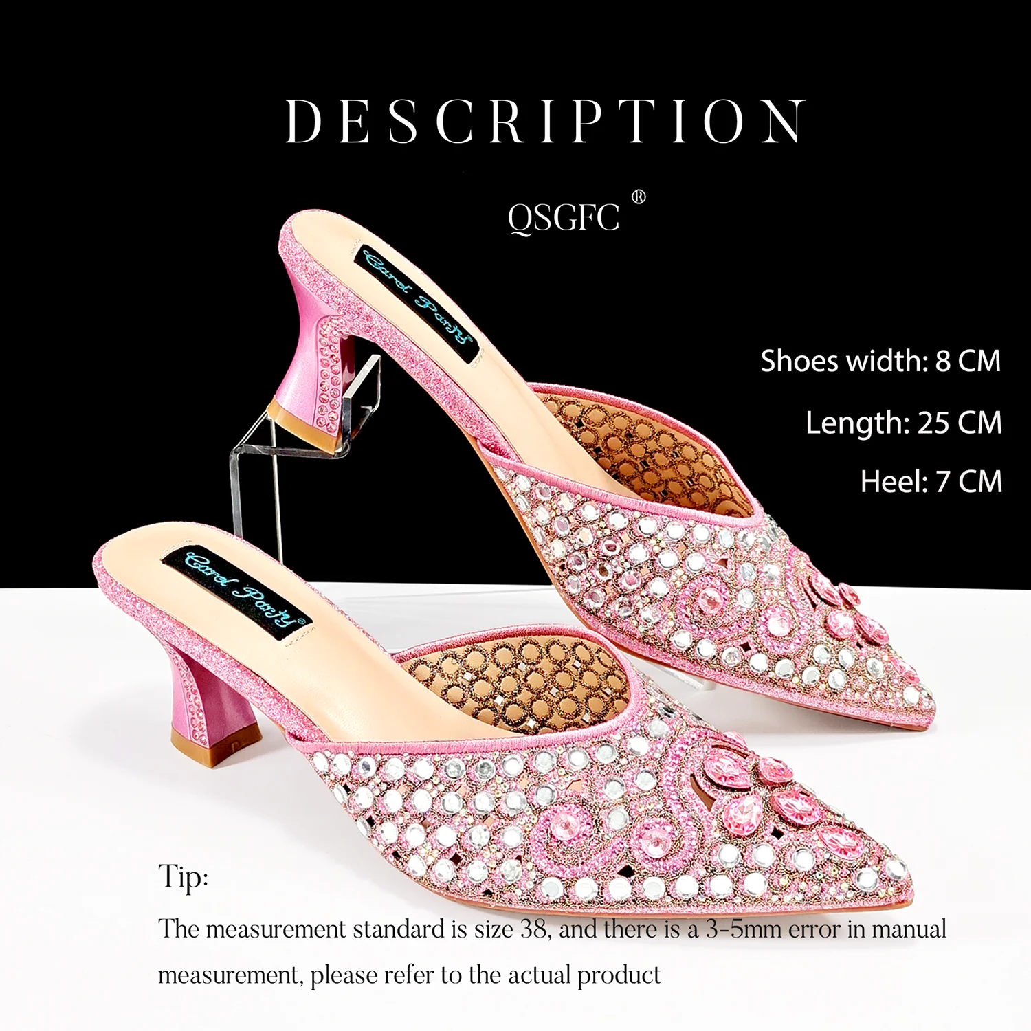 QSGFC – chaussures et sac à talons pour femmes italiennes, nouveau Design spécial, couleur rose, talons confortables avec strass pour partie