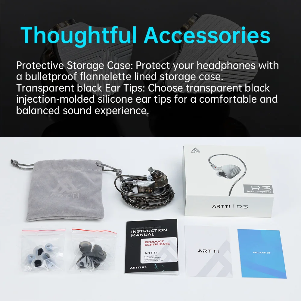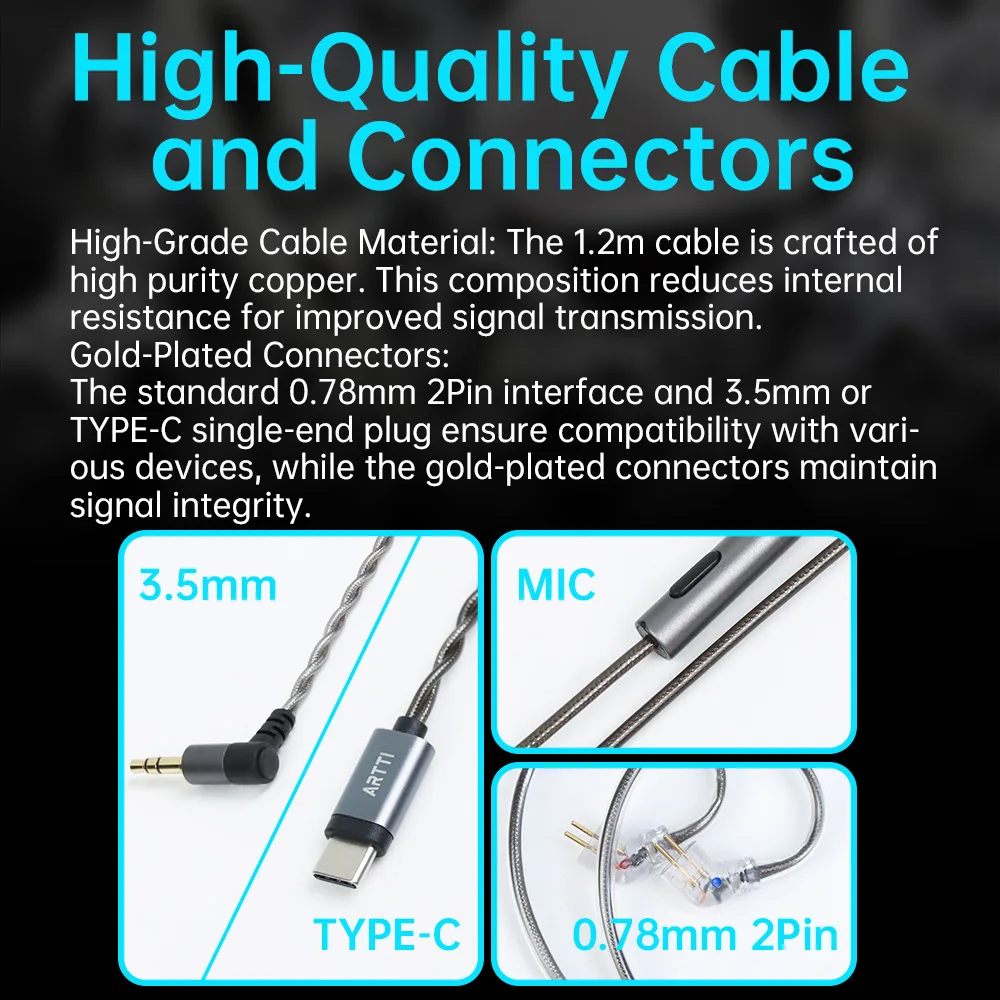 Écouteurs intra-auriculaires ARTTI R3 avec transducteur dynamique plaqué béryllium de 10 mm, moniteur HIFI, câble détachable 0,78 2 broches/Type-C