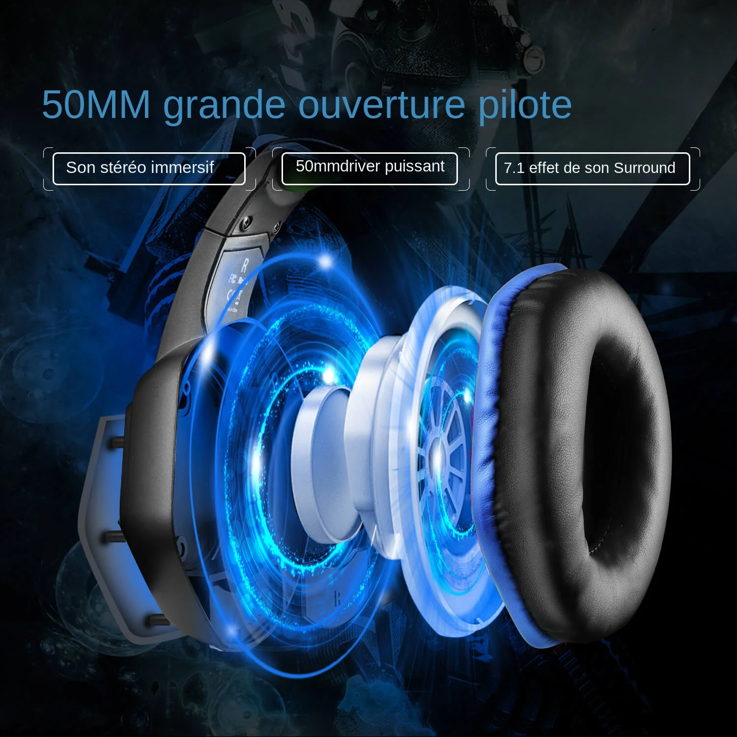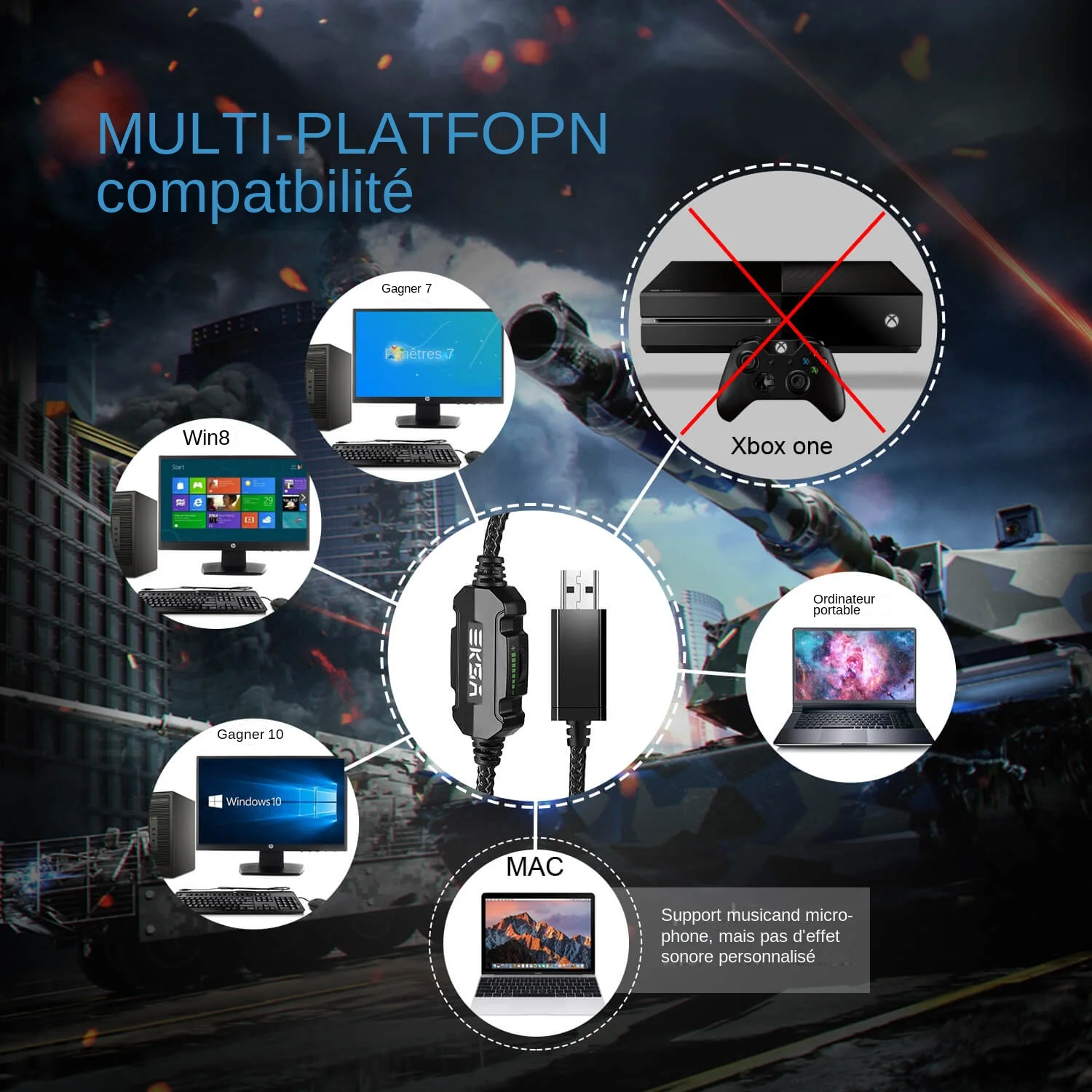 EKSA E1000 casque de jeu pour PC/PS4/PS5 7.1 Surround RGB casque de jeu Gamer USB casque filaire avec micro antibruit