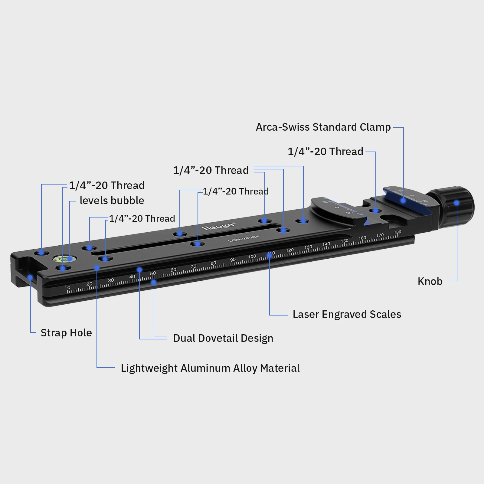 Haoge – Rail Macro à Double queue d'aronde et pince à dégagement rapide pour Arca RRS, 200mm