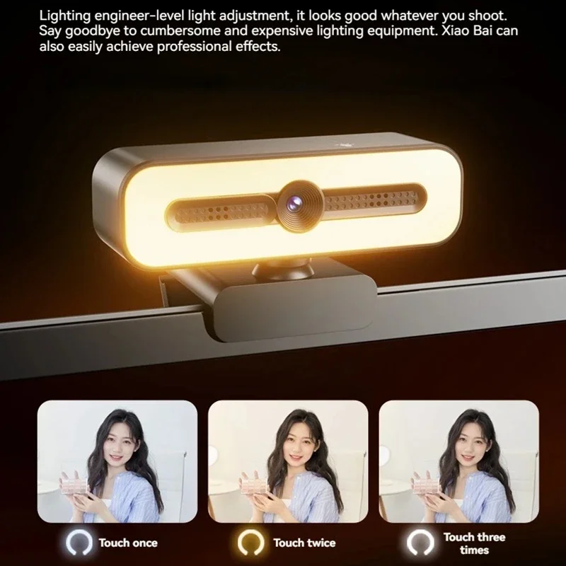 Mini caméra HD 4K portable Lenovo, webcam 1080P avec lumière intégrée et micro antibruit pour les appels vidéo en direct et les conférences