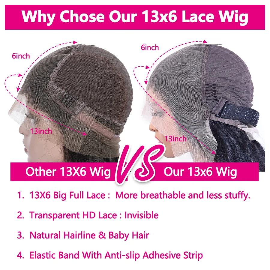 Cheveux bruts indiens Remy ≥98%, dentelle transparente 13x6 HD.