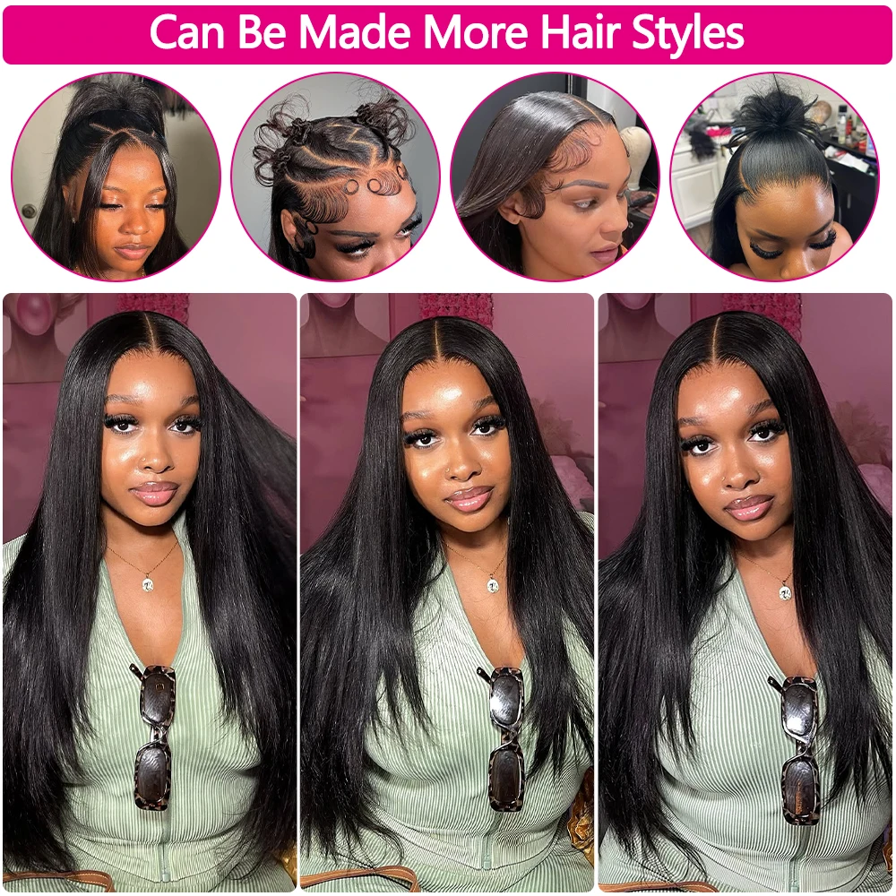 Perruques de cheveux humains droites de 30 pouces pour femmes 13x6 HD perruque frontale en dentelle transparente multi séparation pré plumée perruque de cheveux bruts indiens