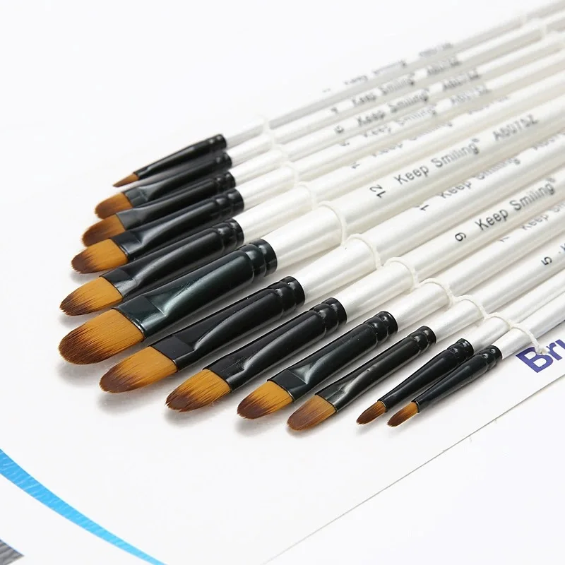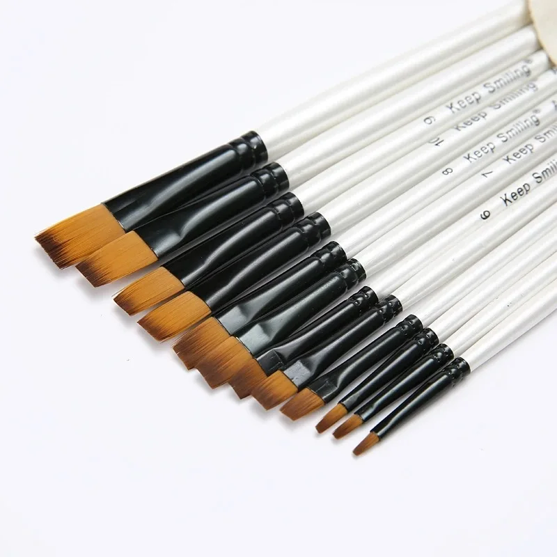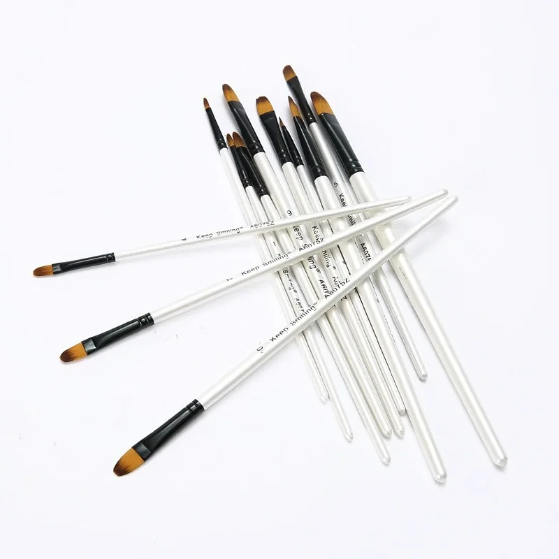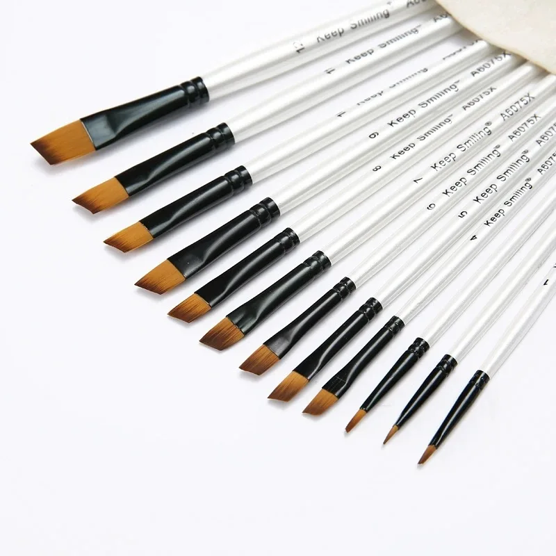 Pinceau d'interconnexion de stylo de ligne de crochet, peinture acrylique à l'huile de gouache, pinceaux d'art, cheveux en nylon, ensemble de 12 pièces
