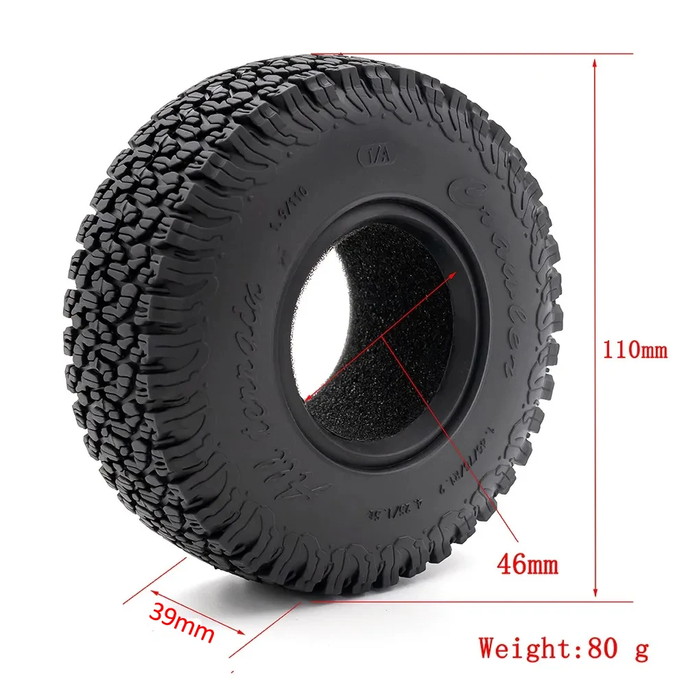 Pneu en caoutchouc de 1.9 pouces, 4 pièces, 110x45mm, pour voiture sur chenilles 1/10 Rc Trax Trx4 Axial Scx10 Wraith Rc4wd Yikong Rgt Wrangler 1.9 roues