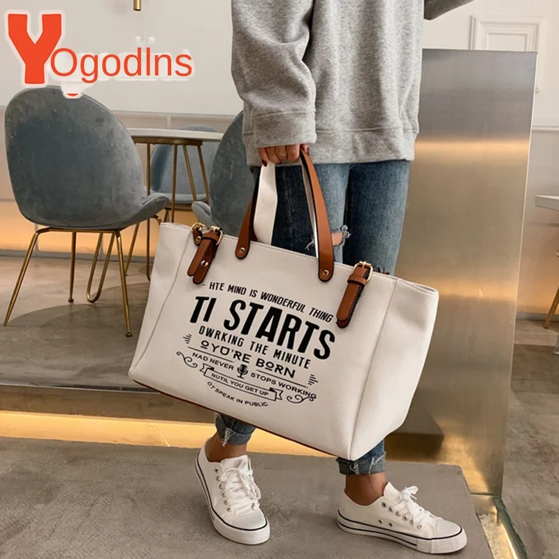 Yogodlns mode toile sac à main et sac à main femme grande capacité sac à bandoulière lettre conception sac à bandoulière fourre-tout décontractés sac Bolsa