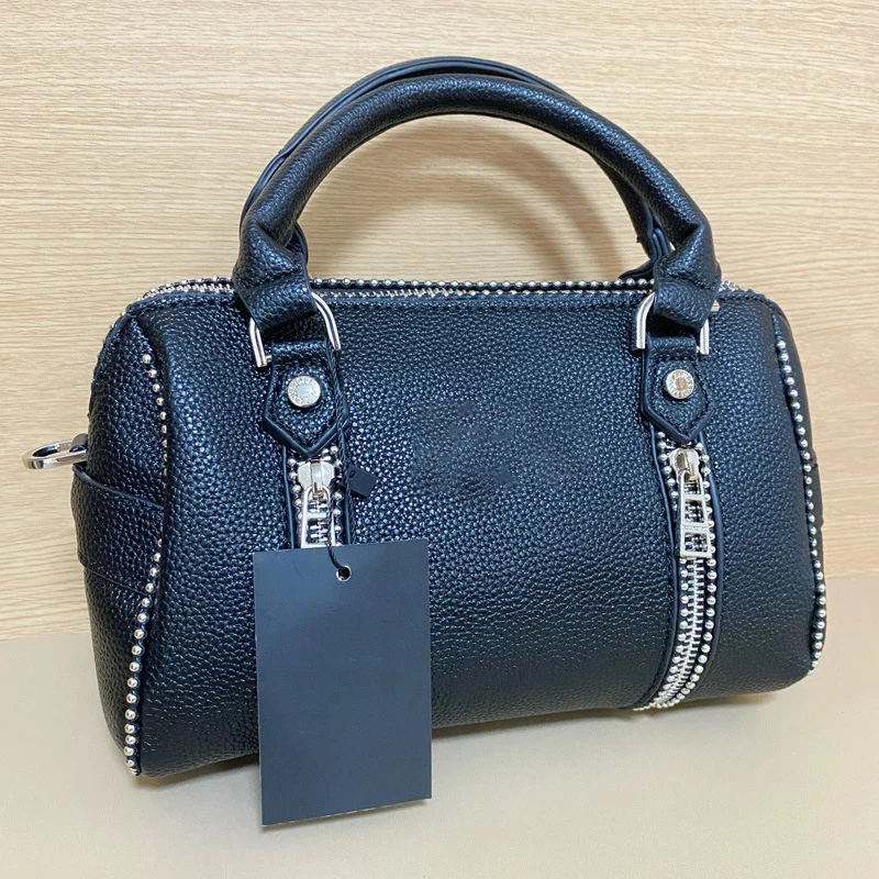 Nouveau sac à bandoulière simple pour femmes à la mode, sac à bandoulière rétro riveté noir t, sac à main décontracté au design luxueux pour femmes