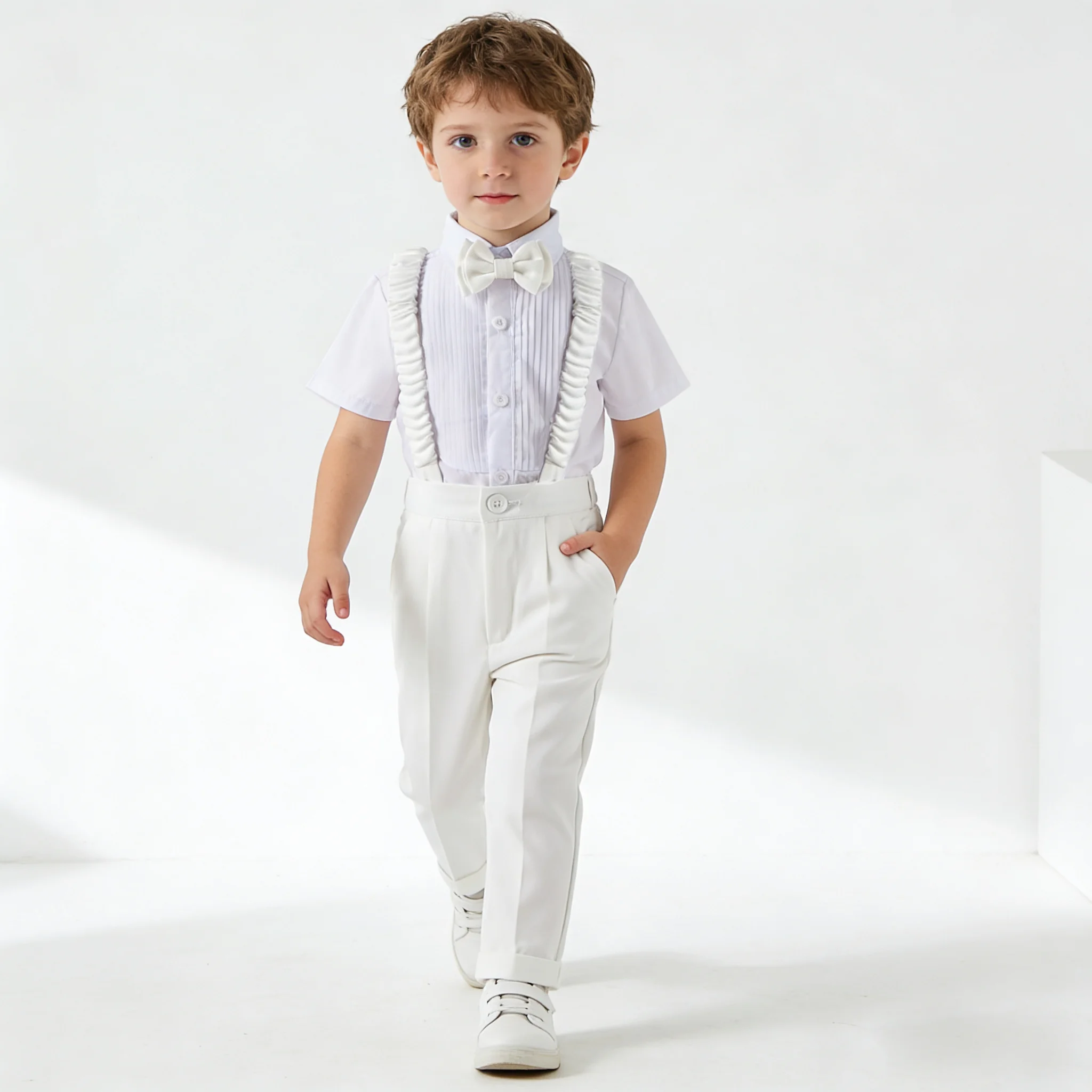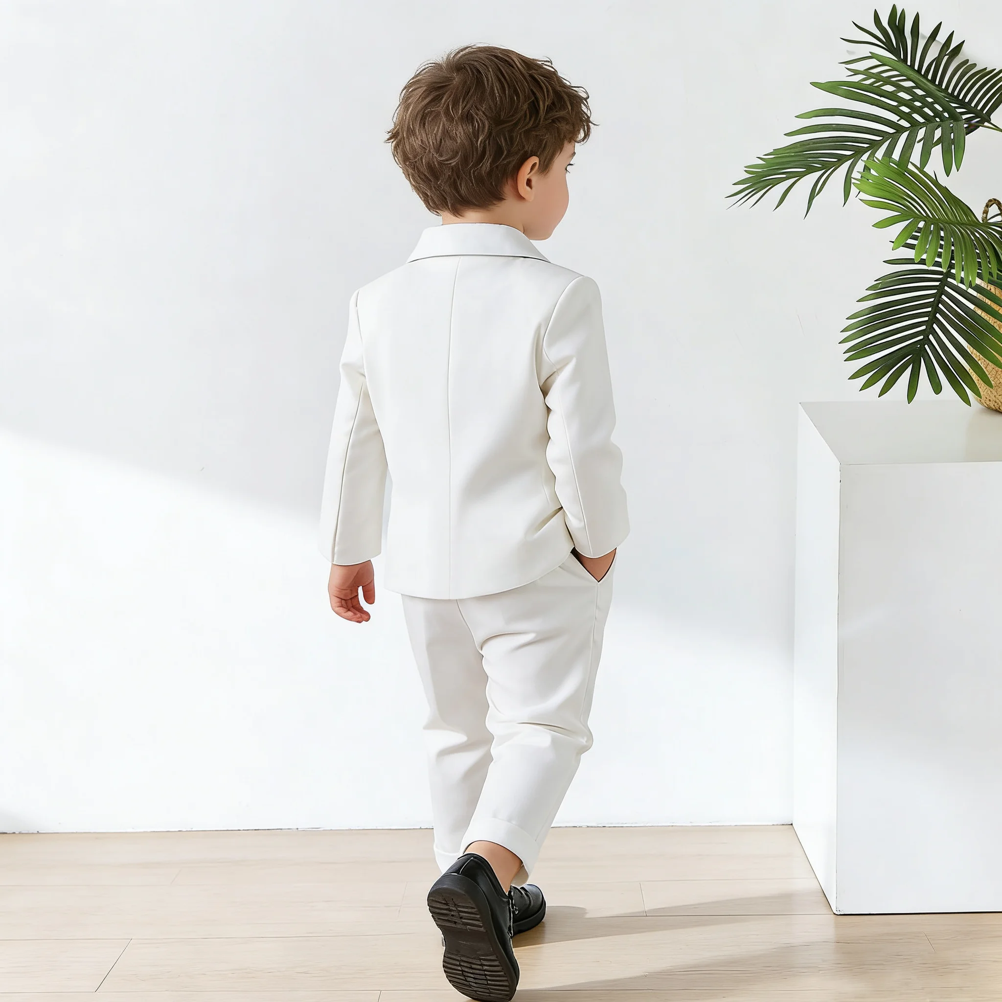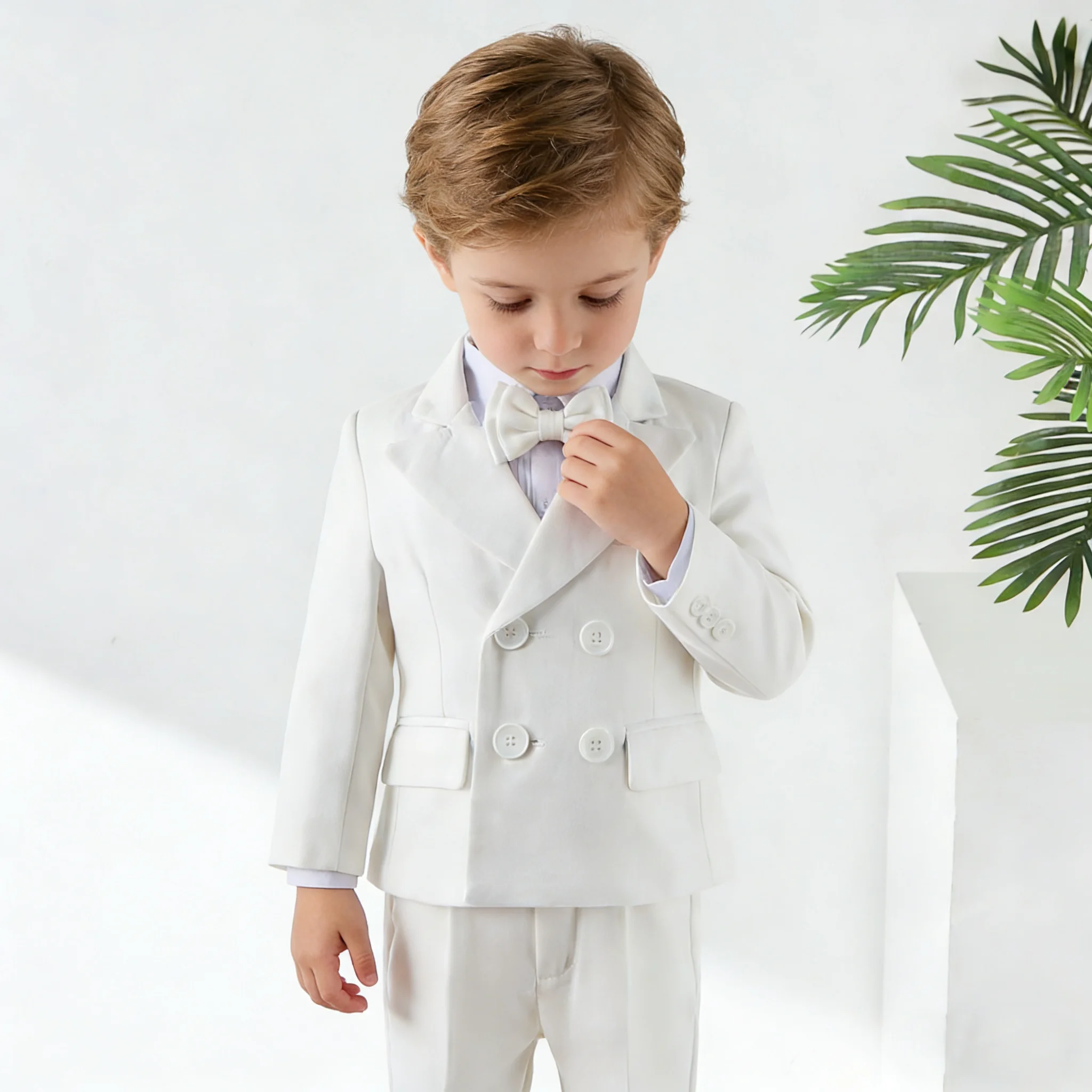 Costume de baptême blanc pour garçons, ensemble de vêtements 3 pièces, veste et pantalon ajusté, Costume de mariage avec nœud papillon, tenue d'anniversaire pour enfants